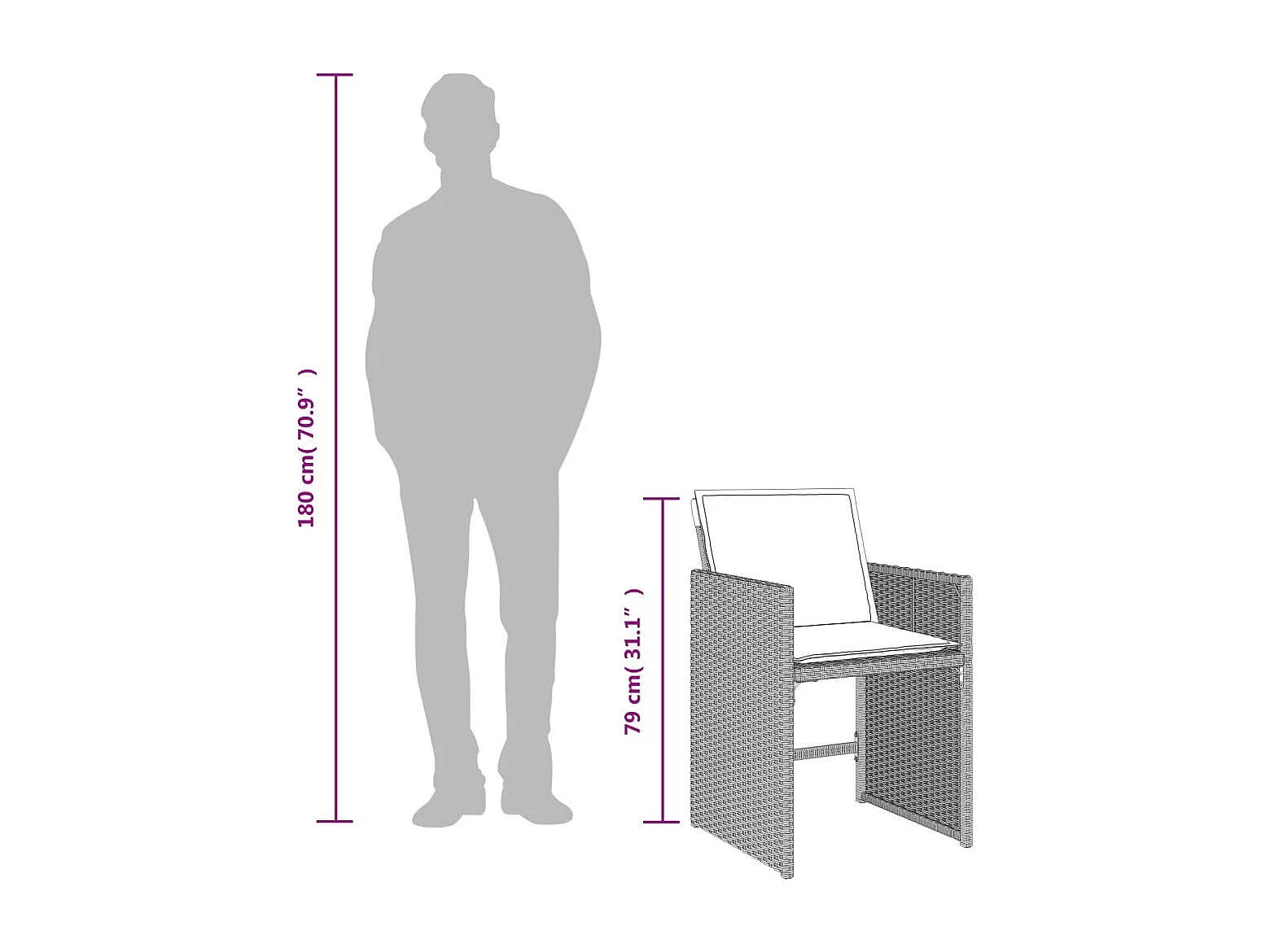 11 pcs conjunto jantar p/ jardim c/ almofadões vime PE cinzento