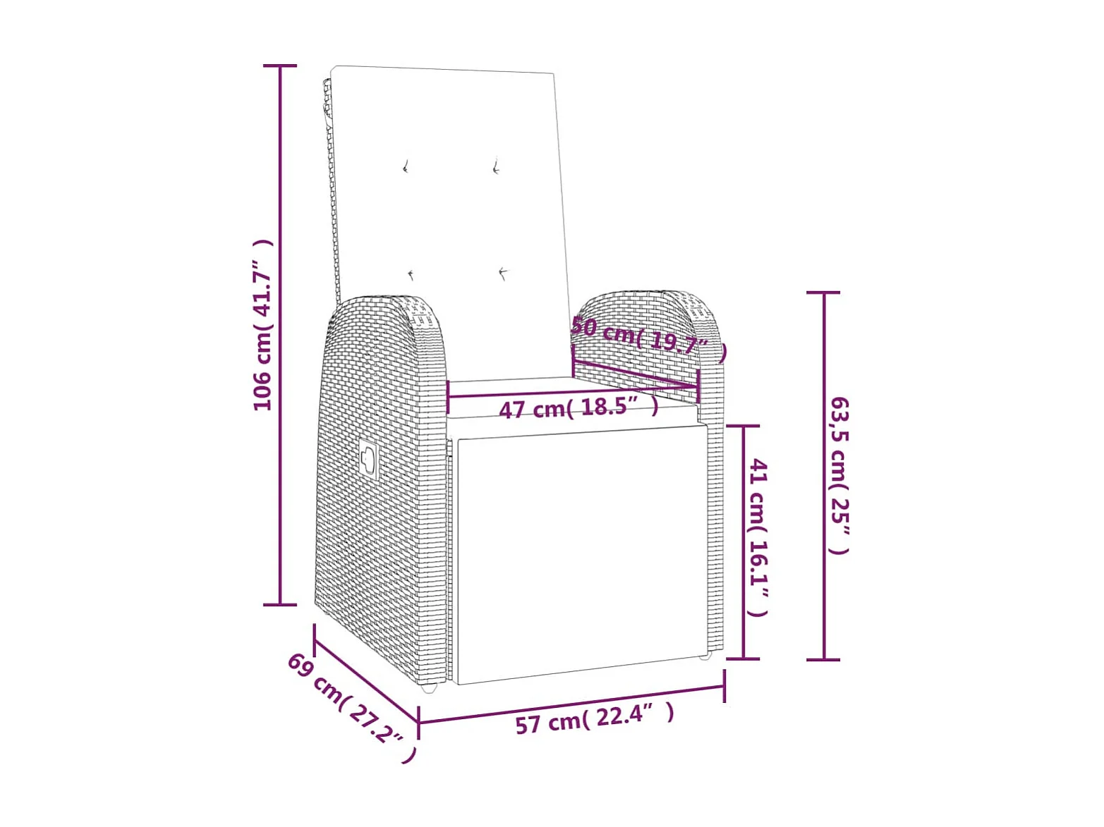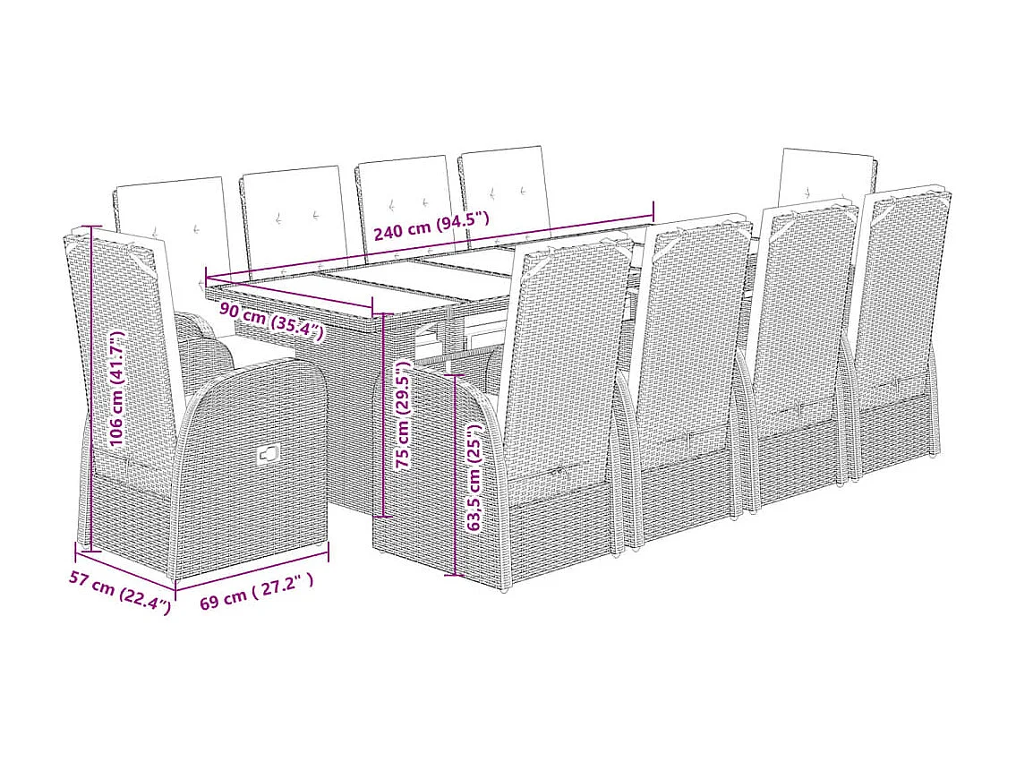 11 pcs conjunto jantar p/ jardim c/ almofadões vime PE cinzento