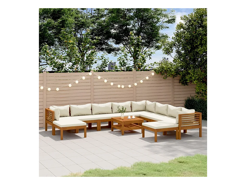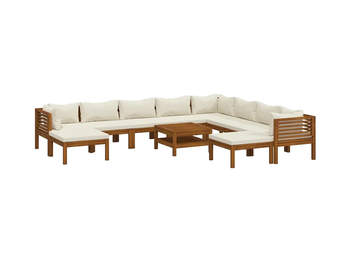 11 pcs conjunto lounge jardim c/ almofadões creme acácia maciça
