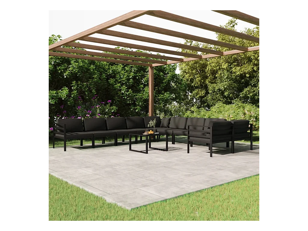 11 pcs conjunto lounge jardim com almofadões alumínio antracite