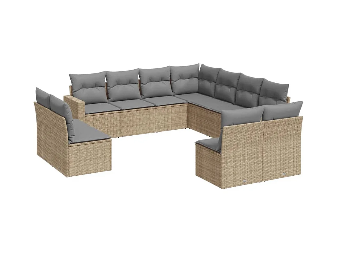 11 peças de móveis de jardim com almofadas de resina bege