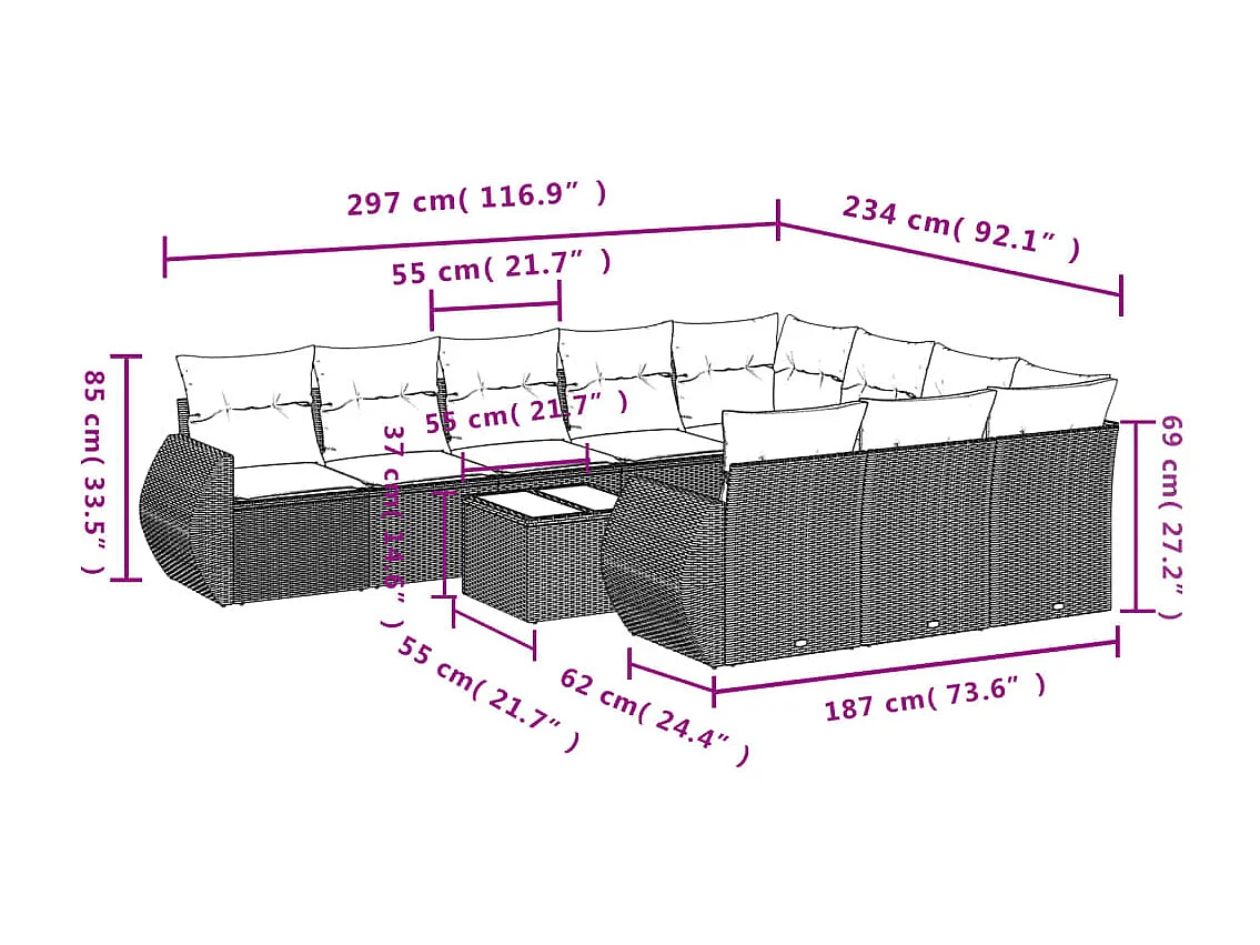 11 peças de móveis de jardim com almofadas de resina bege