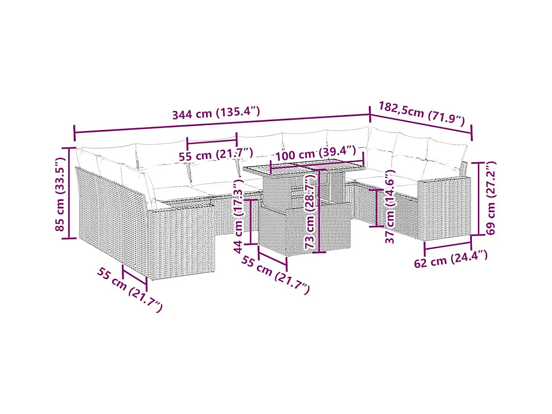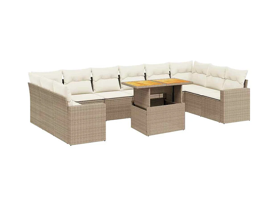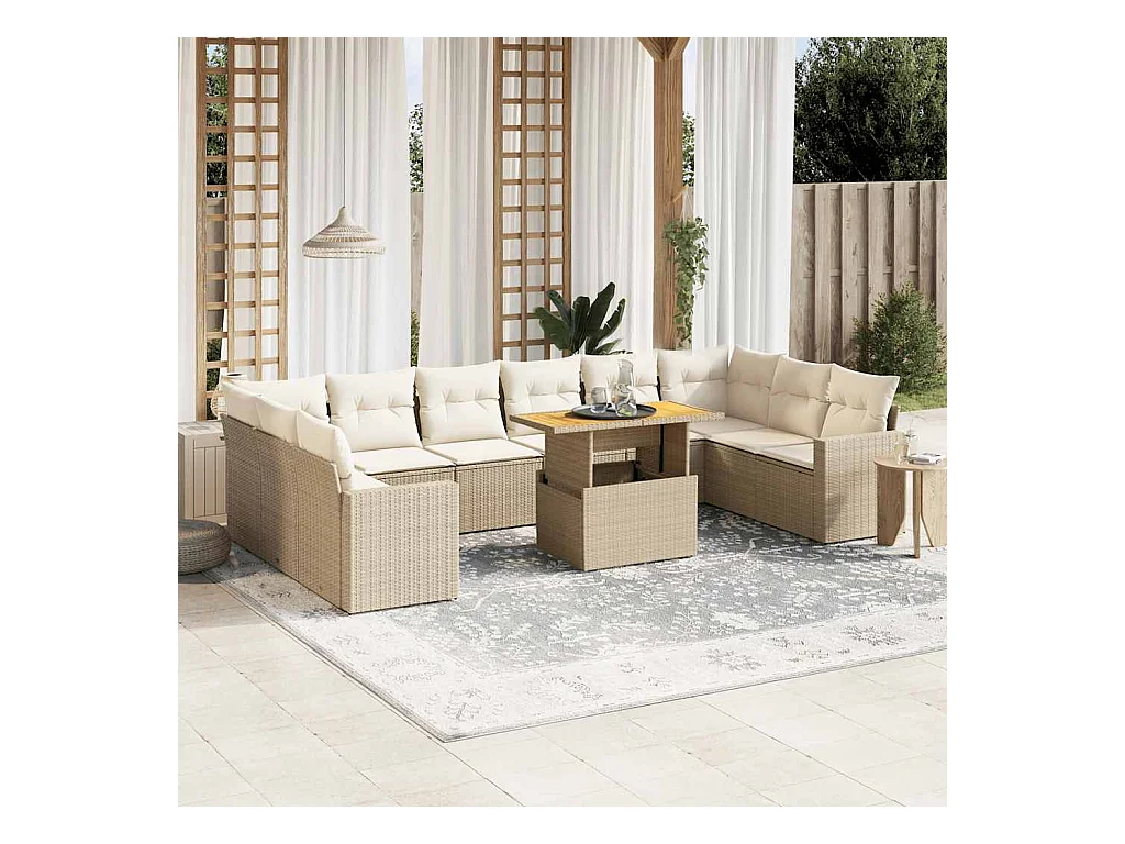 11 pcs conjunto sofás de jardim c/ almofadões vime PE bege