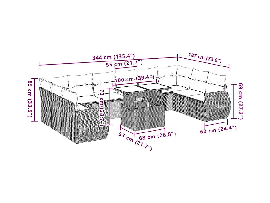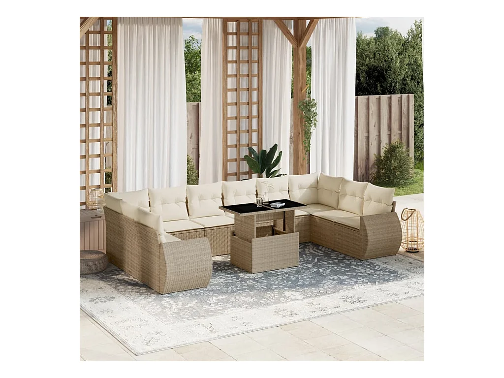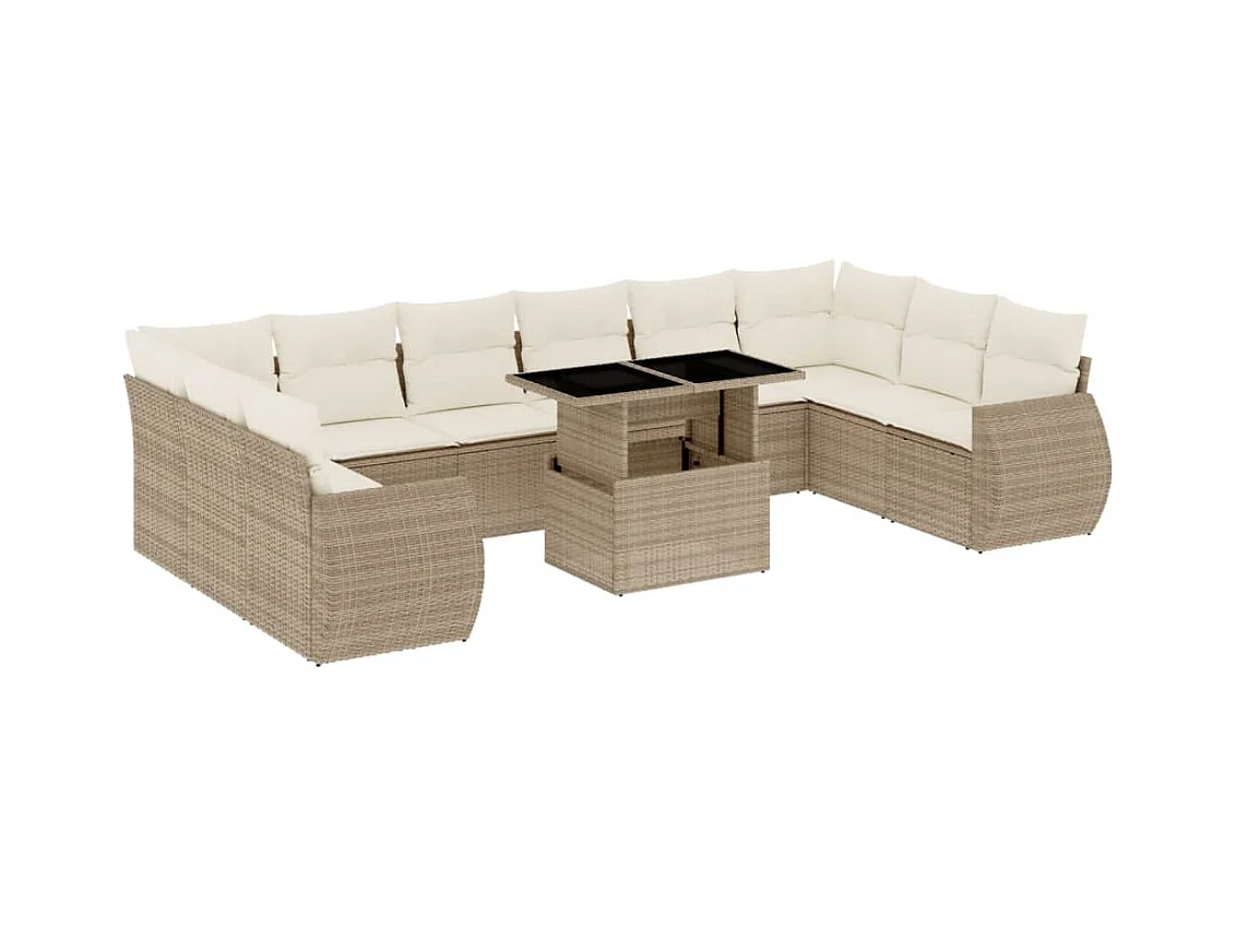 11 pcs conjunto sofás de jardim c/ almofadões vime PE bege