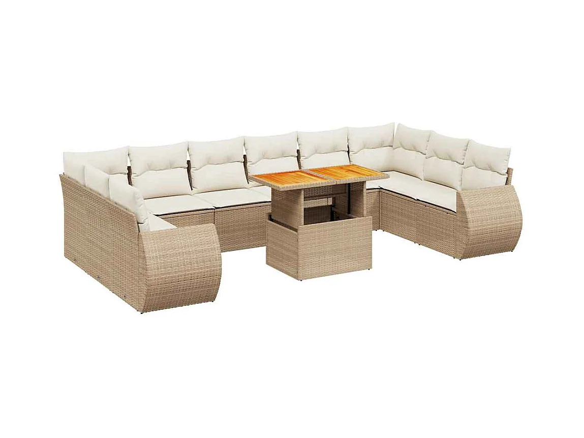 11 pcs conjunto sofás de jardim c/ almofadões vime PE bege
