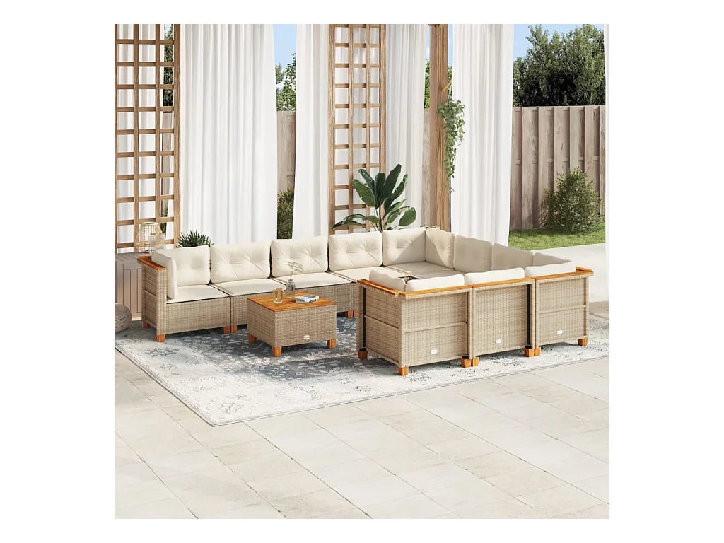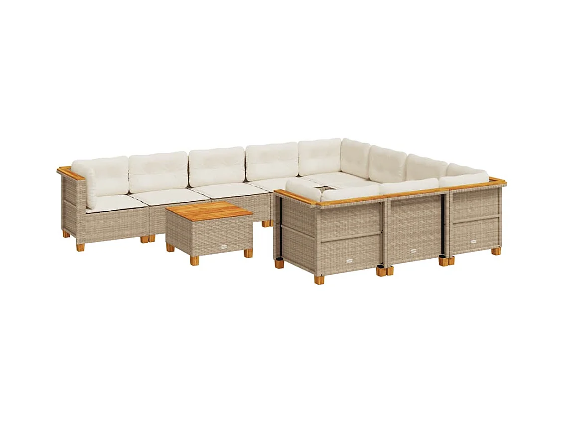 11 pcs conjunto sofás de jardim c/ almofadões vime PE bege