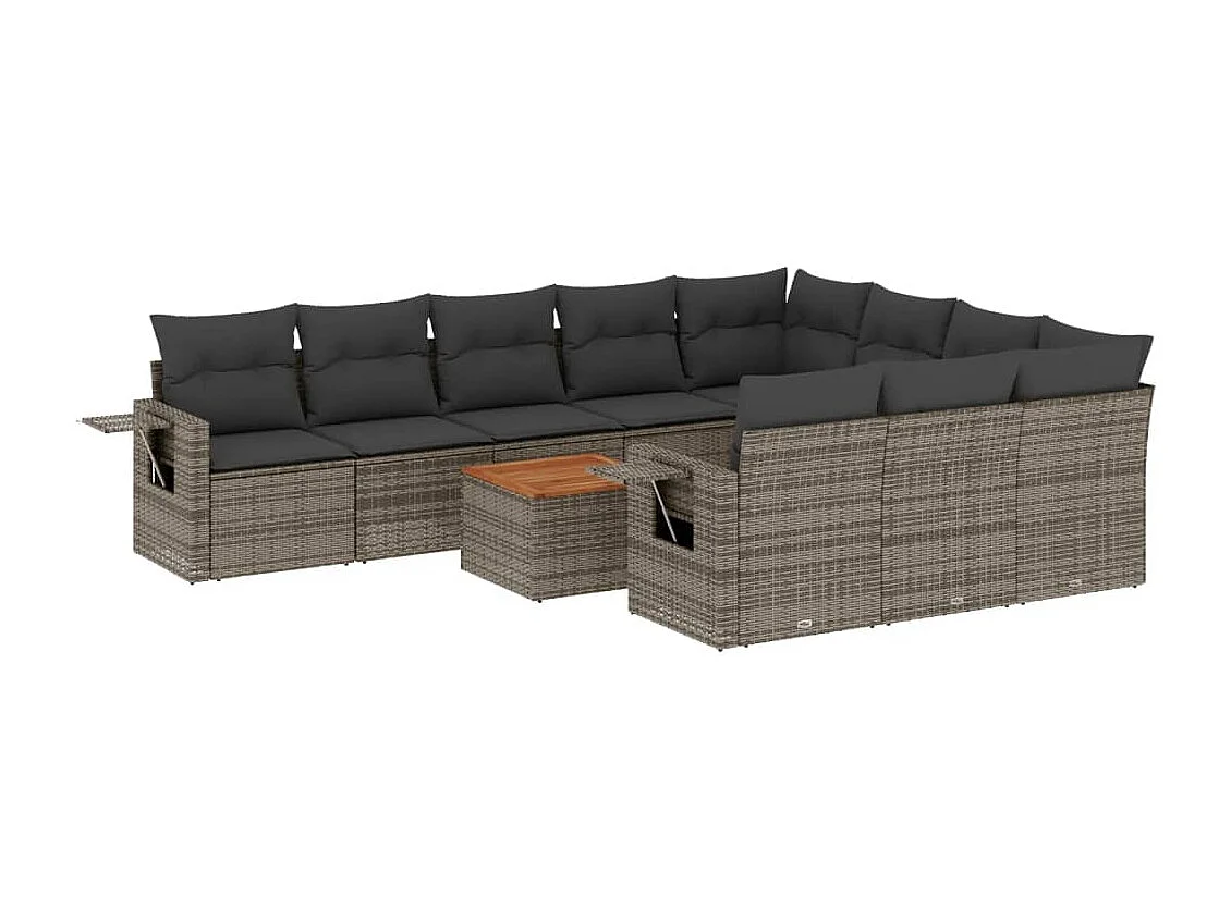 11 peças de móveis de jardim com almofadas de resina tecida preta