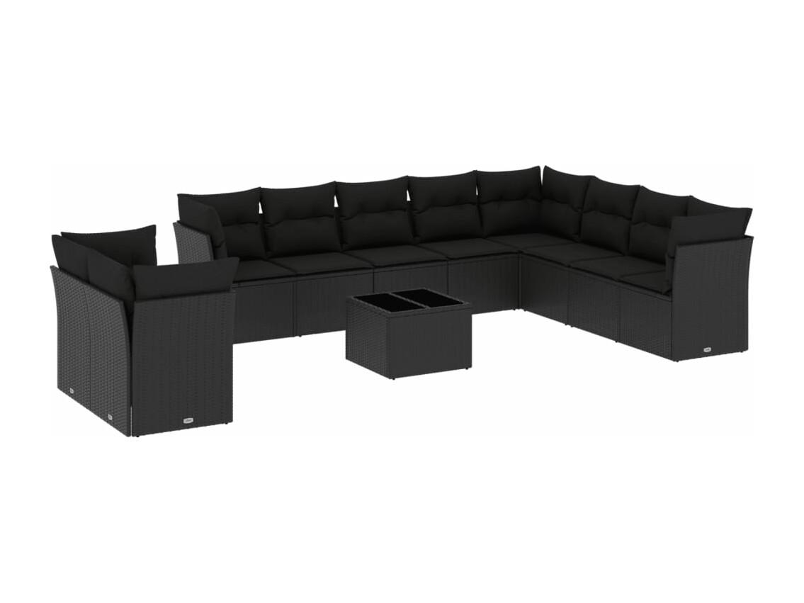 11 pcs conjunto sofás de jardim c/ almofadões vime PE preto