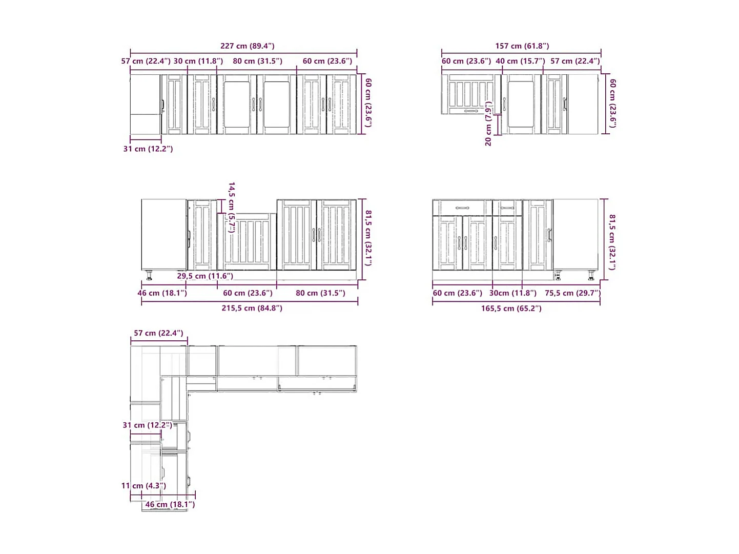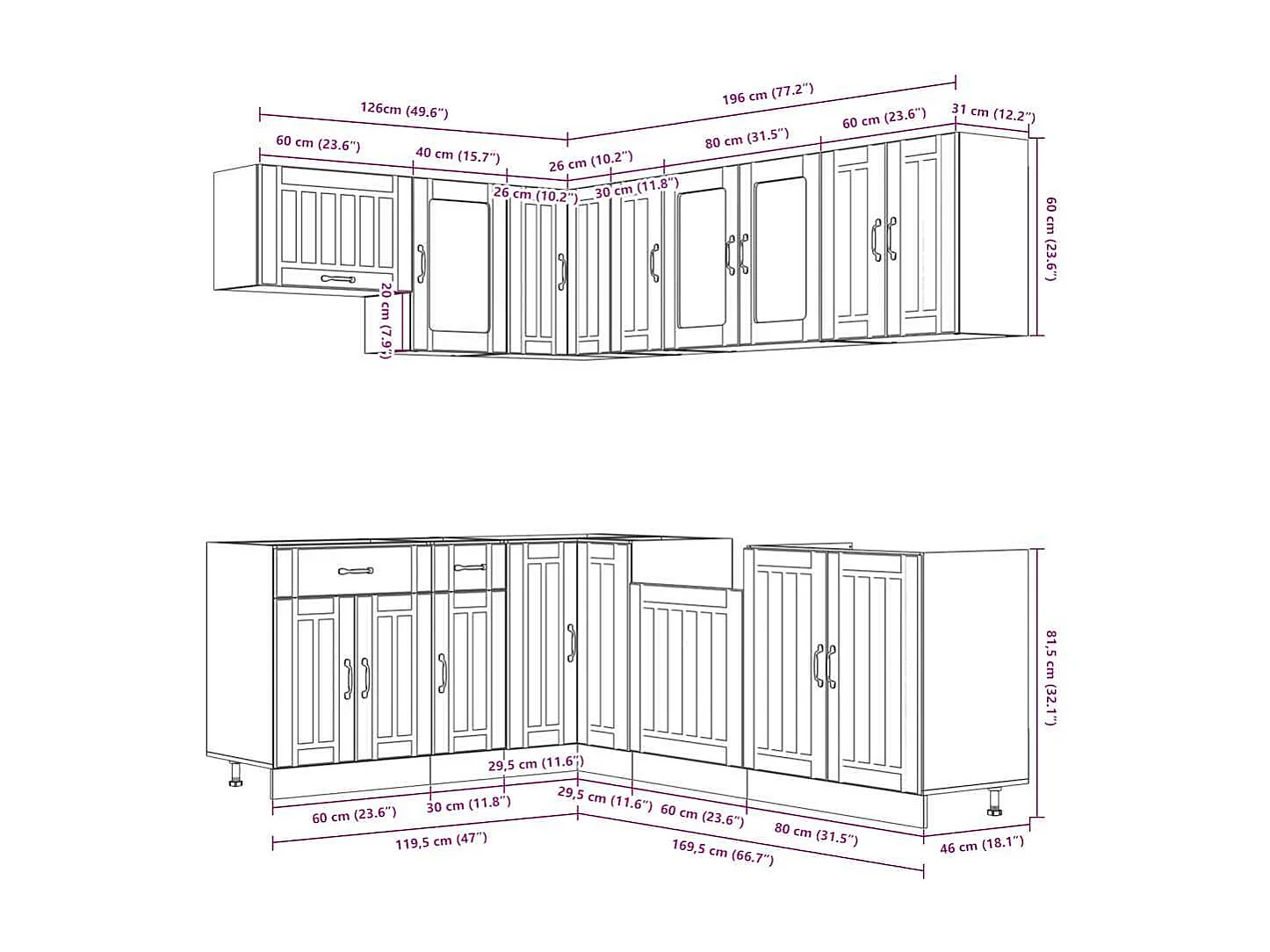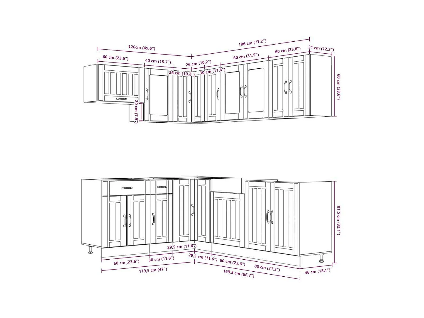 11 peças armário de cozinha conjunto Lucca carvalho castanho