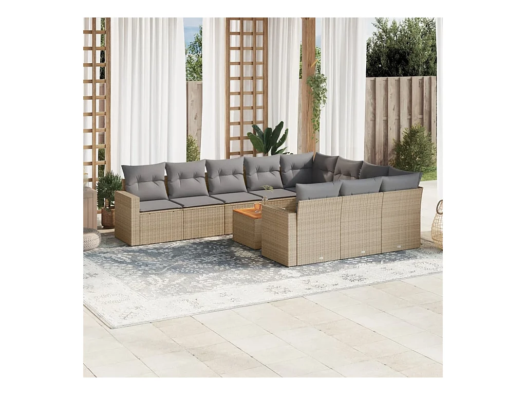 11 peças conjunto sofás de jardim c/ almofadões vime PE bege