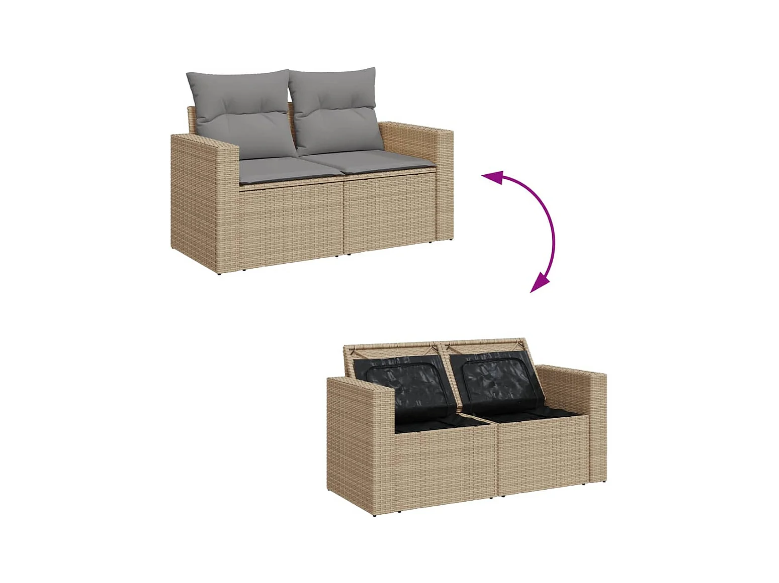 11 pcs conjunto sofás de jardim c/ almofadões vime PE bege