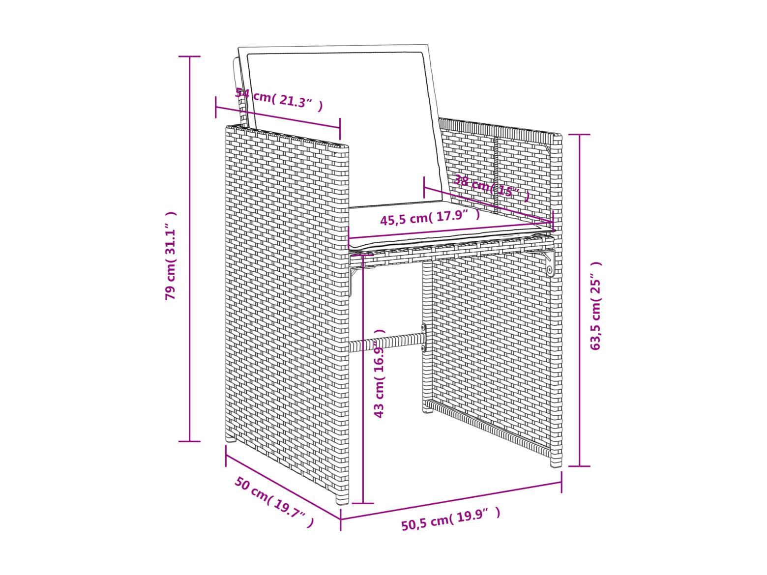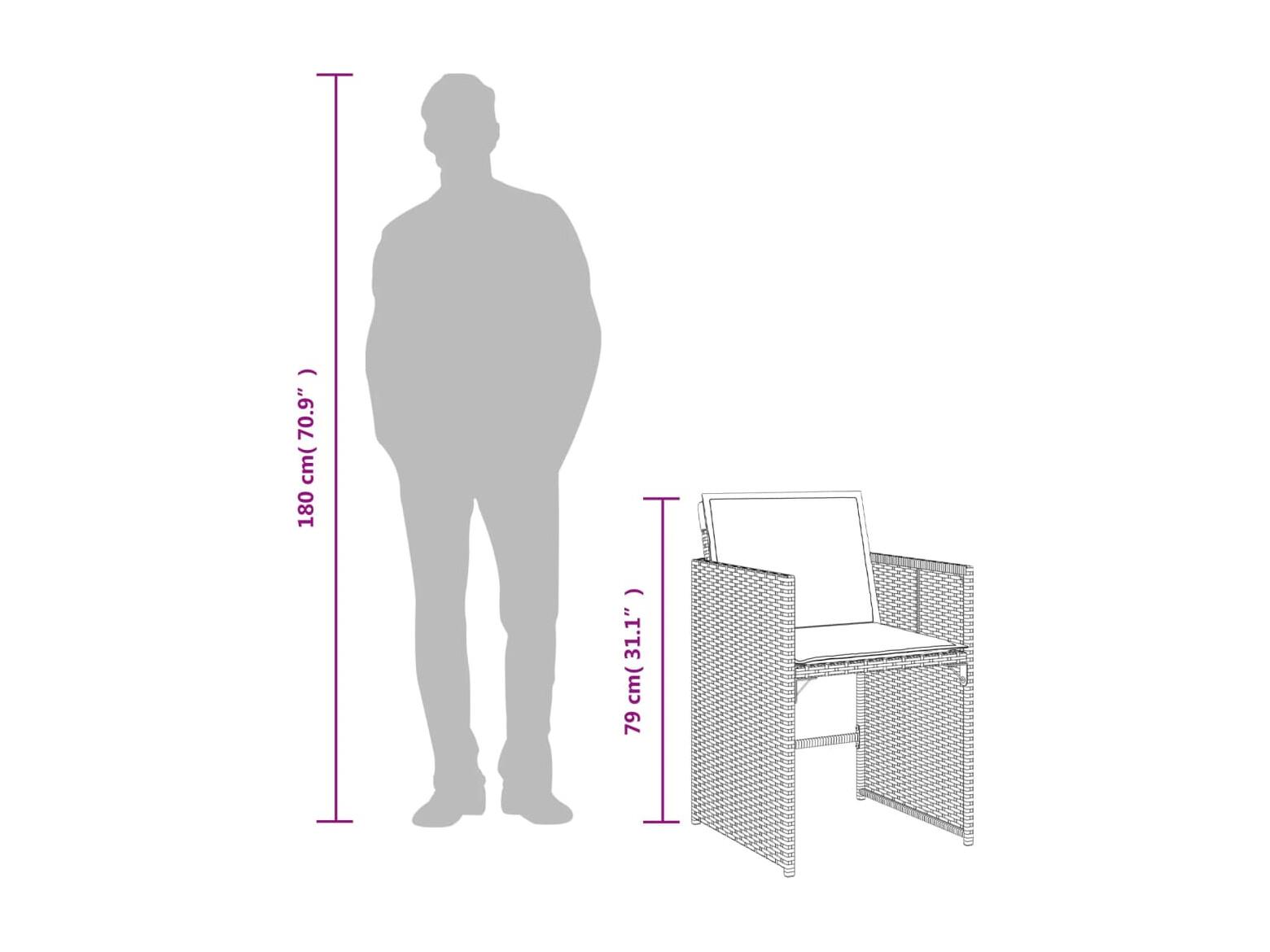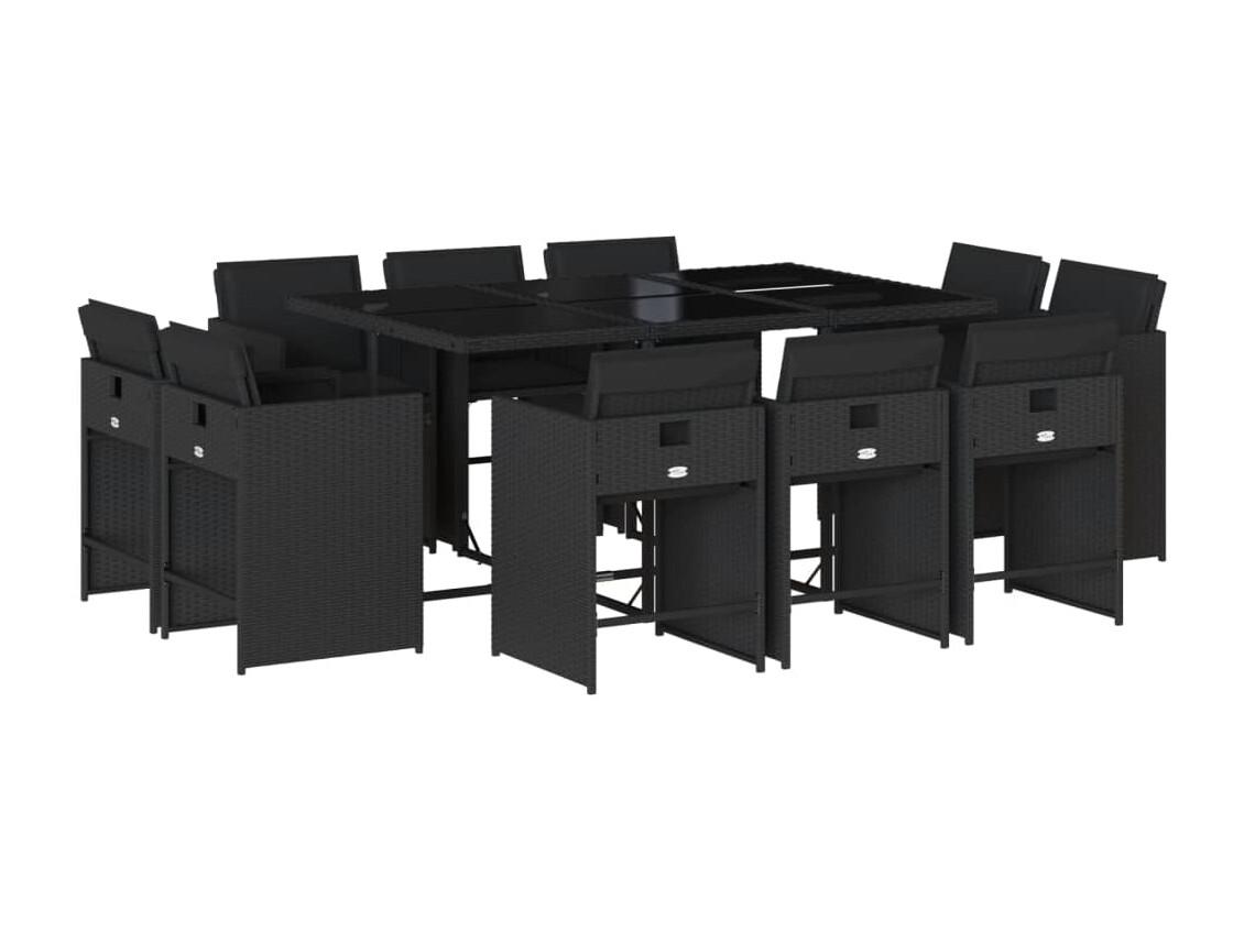 11 peças conjunto de jantar para jardim com almofadões vime PE preto