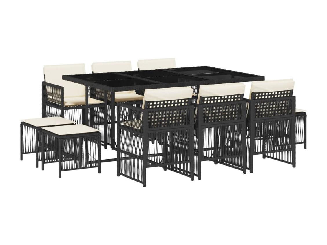 11 peças conjunto de jantar para jardim com almofadões vime PE preto