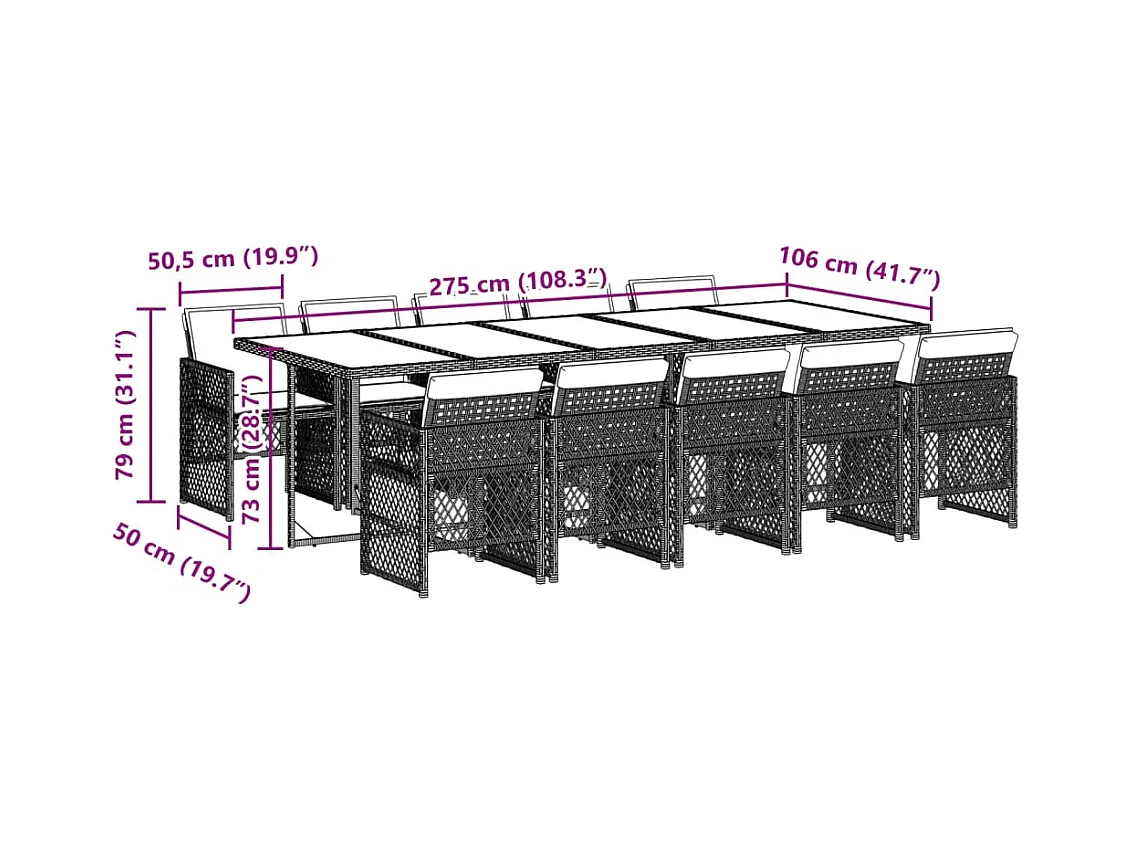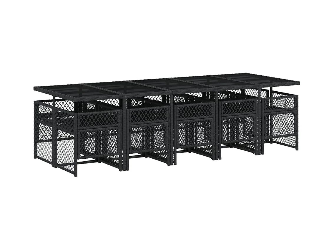11 peças conjunto de jantar para jardim com almofadões vime PE preto