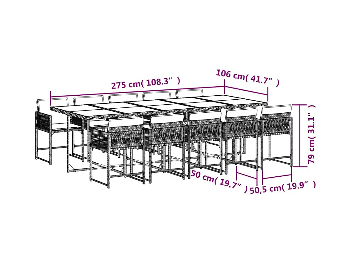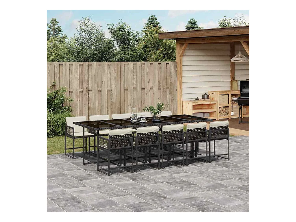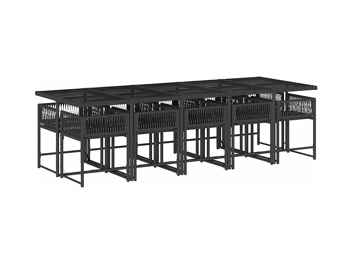 11 peças conjunto de jantar para jardim com almofadões vime PE preto