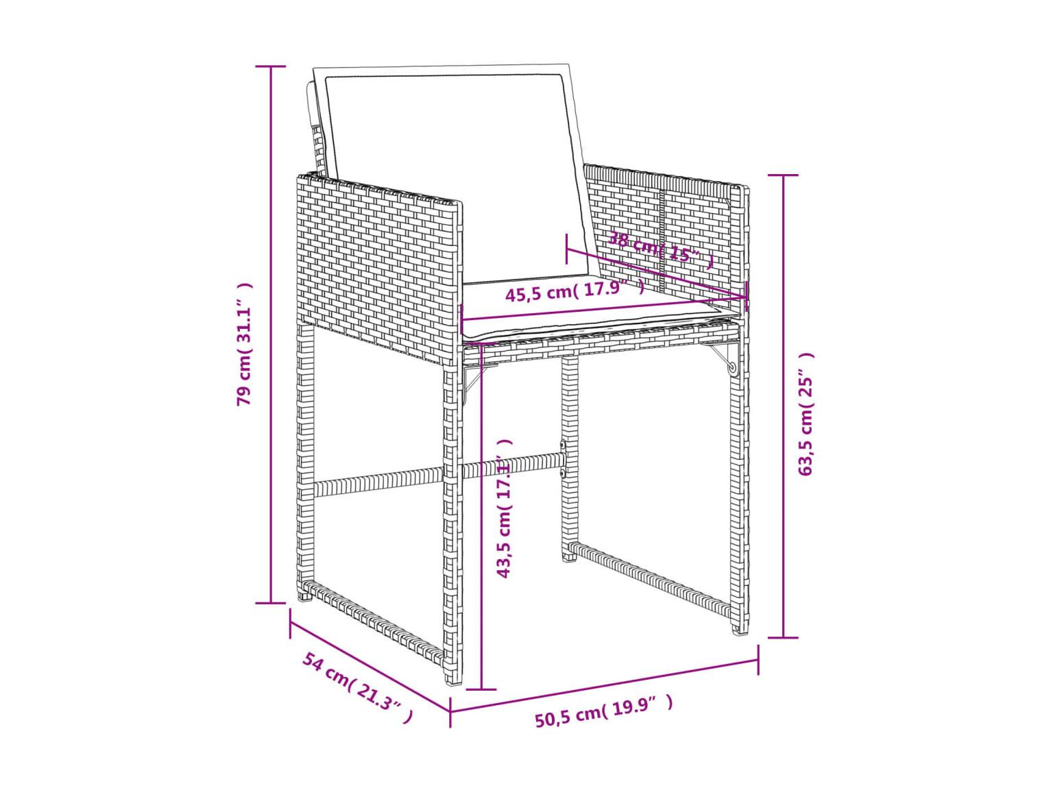 11 peças conjunto de jantar para jardim com almofadões vime PE preto