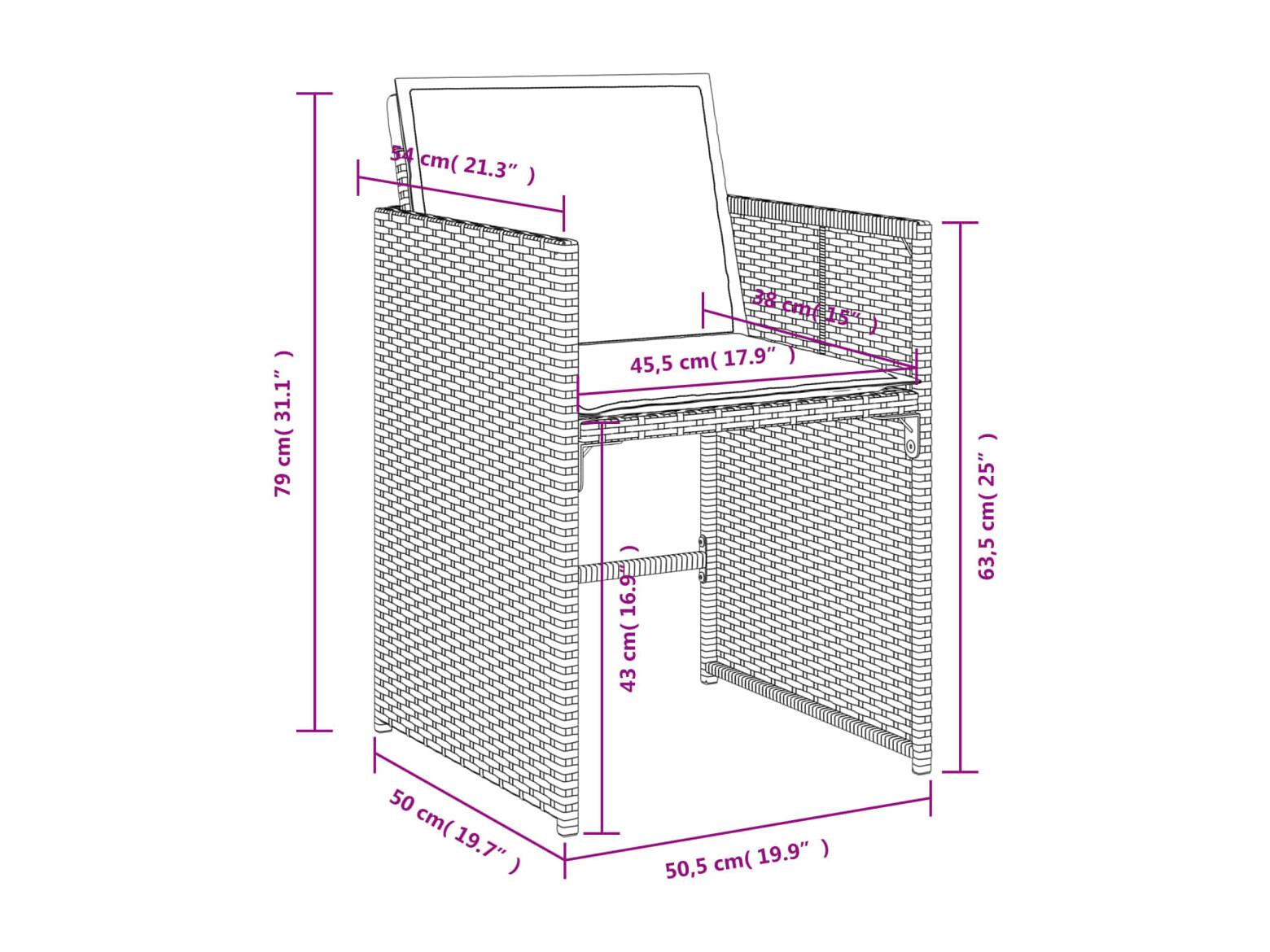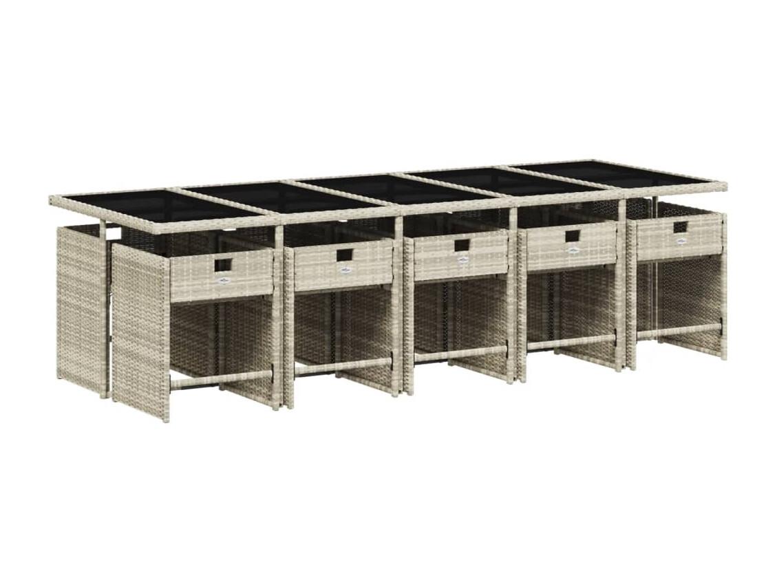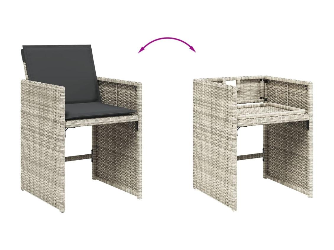 11 peças conjunto jantar para jardim com almofadões vime PE cinzento