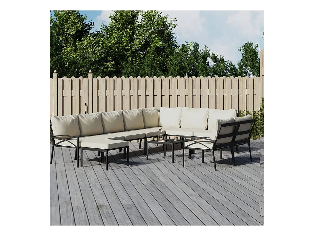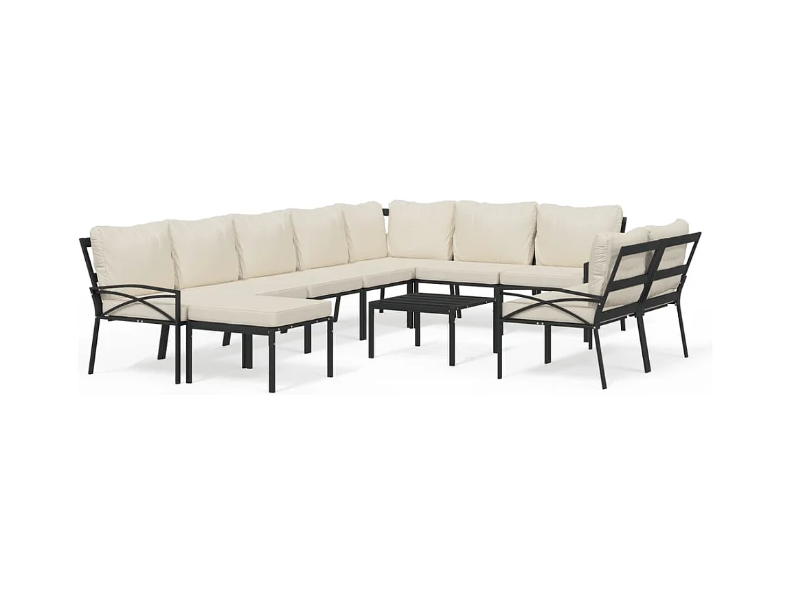 11 peças conjunto lounge de jardim aço c/ almofadões areia