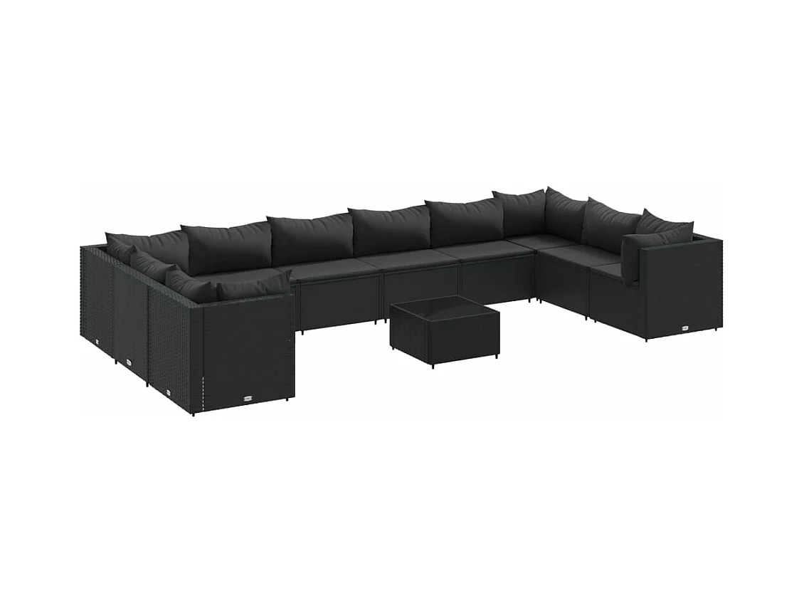 11 peças conjunto lounge de jardim com almofadões vime PE preto