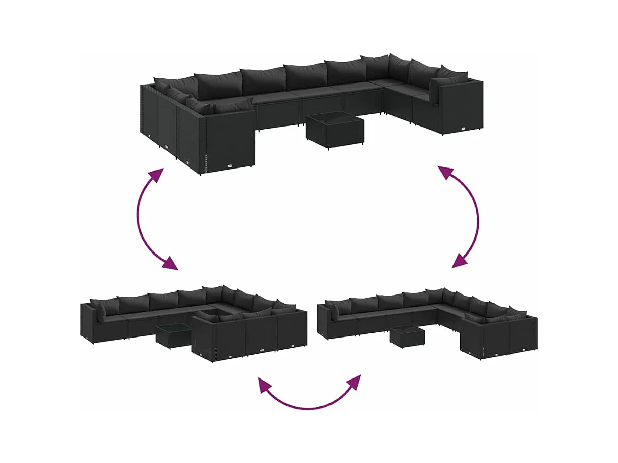 11 pcs conjunto sofás de jardim c/ almofadões vime PE preto
