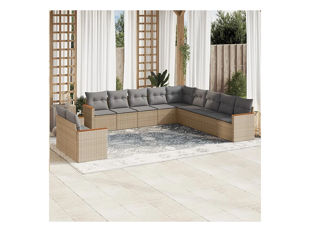 11 peças conjunto sofás de jardim c/ almofadões vime PE bege