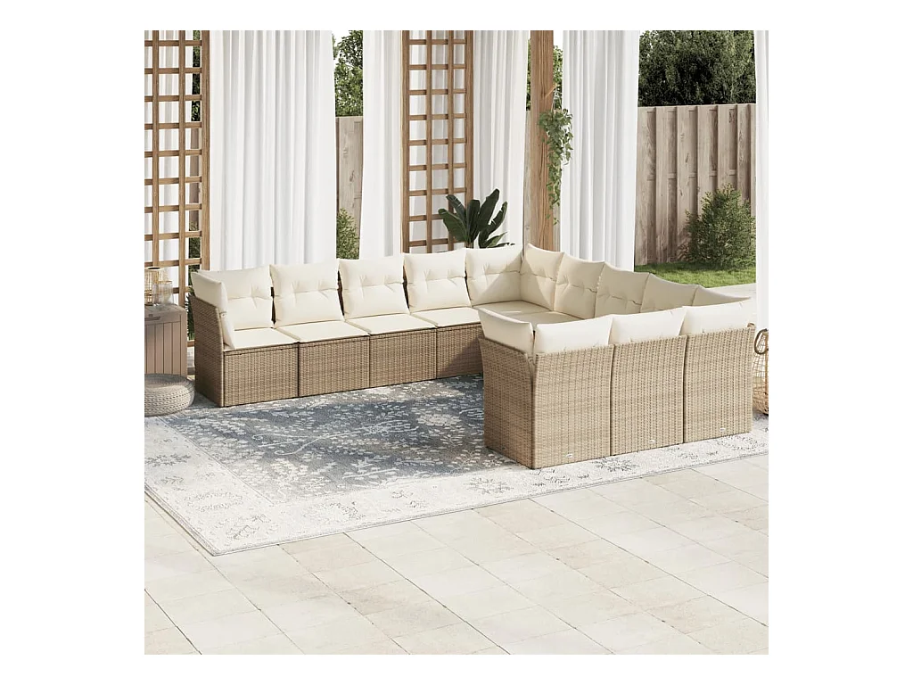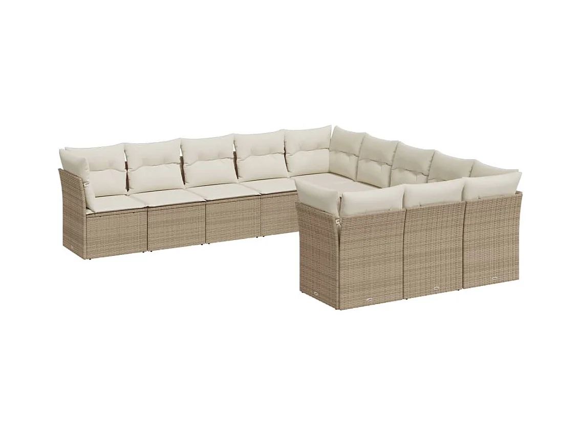 11 peças conjunto sofás de jardim c/ almofadões vime PE bege