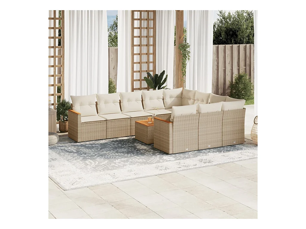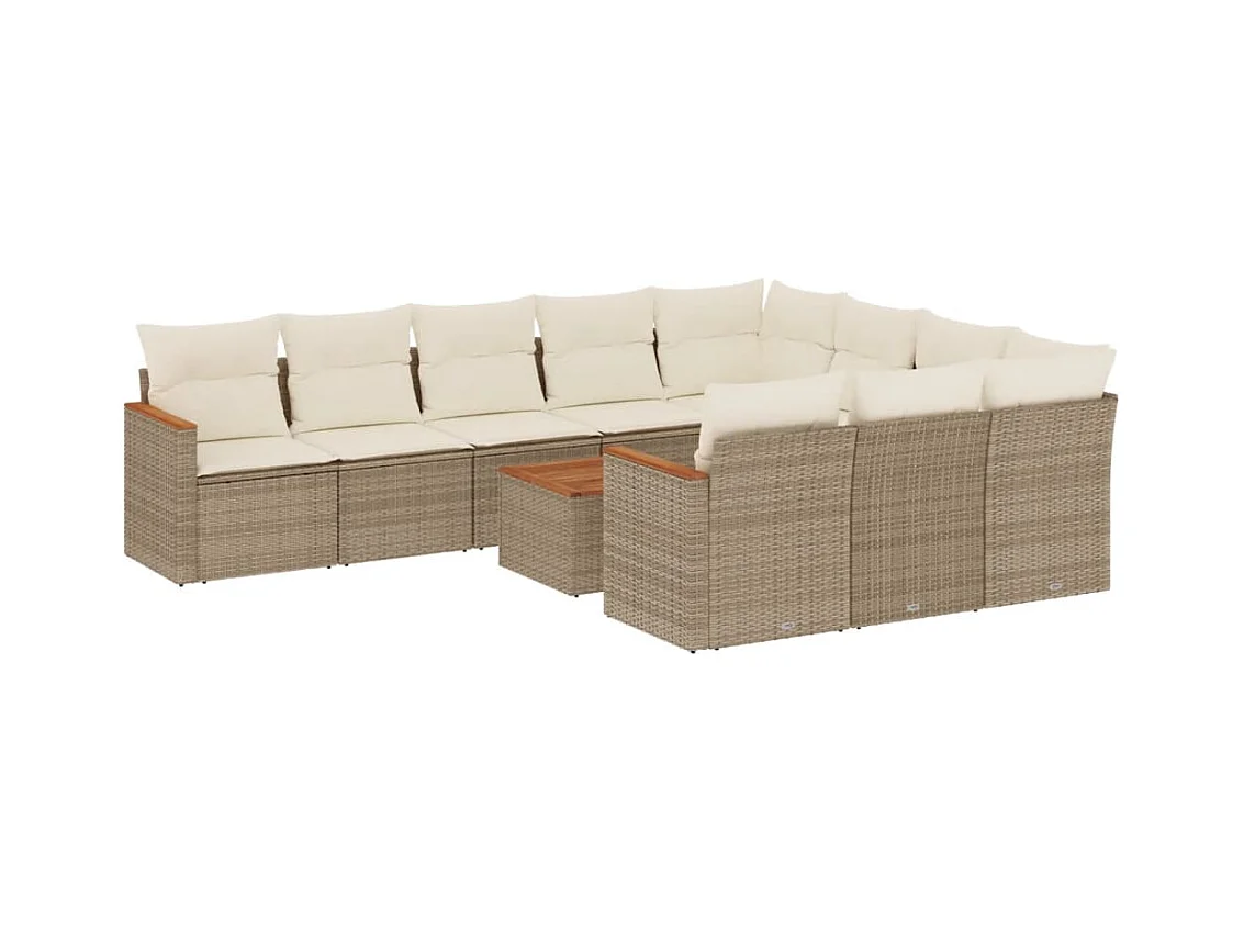 11 peças conjunto sofás de jardim c/ almofadões vime PE bege