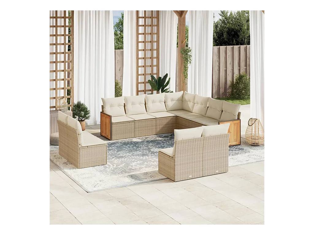 11 peças conjunto sofás de jardim c/ almofadões vime PE bege