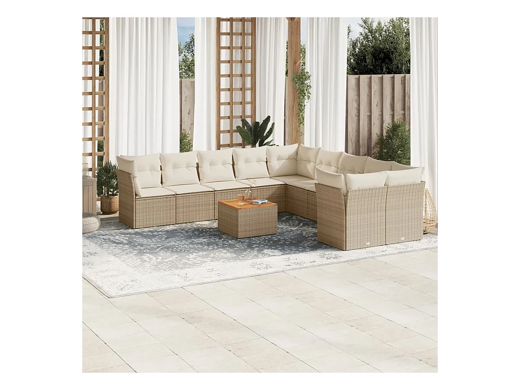 11 peças conjunto sofás de jardim c/ almofadões vime PE bege