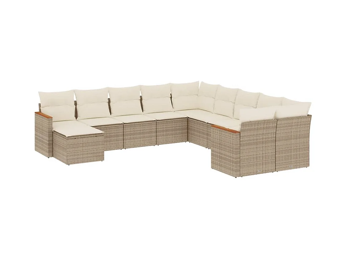 11 peças conjunto sofás de jardim c/ almofadões vime PE bege