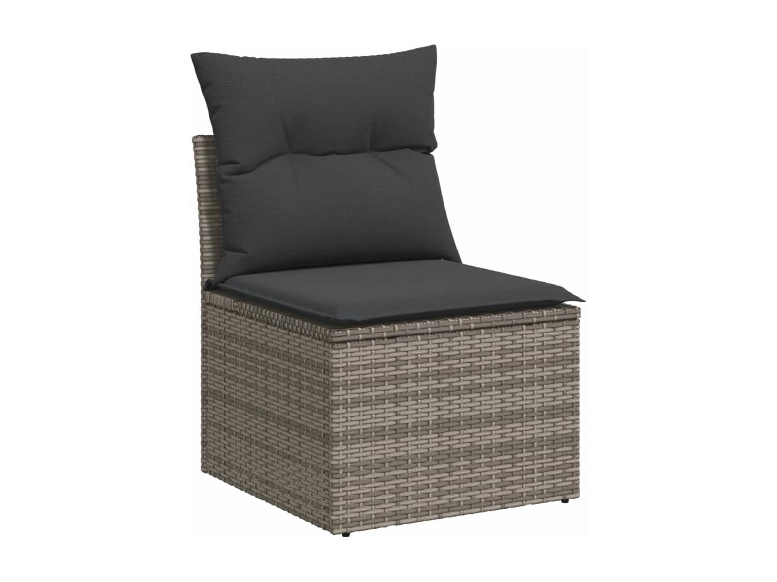 11 peças conjunto sofás de jardim c/ almofadões vime PE cinzento