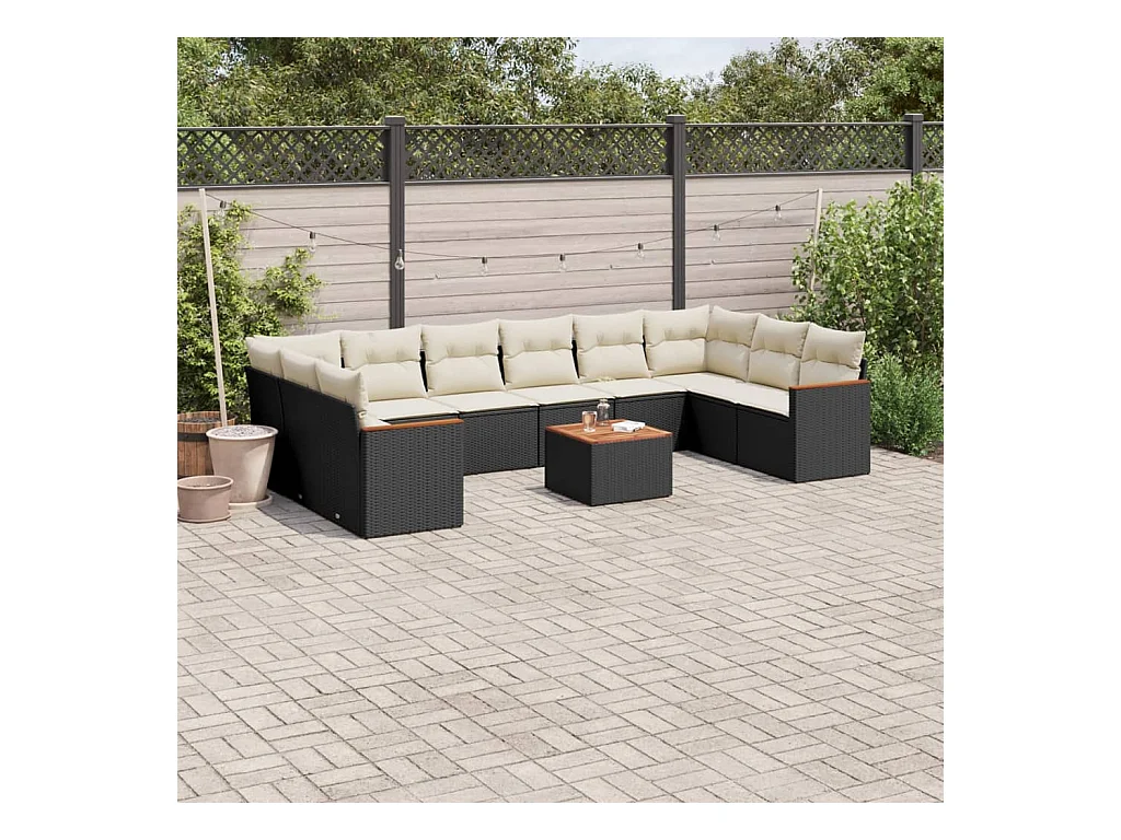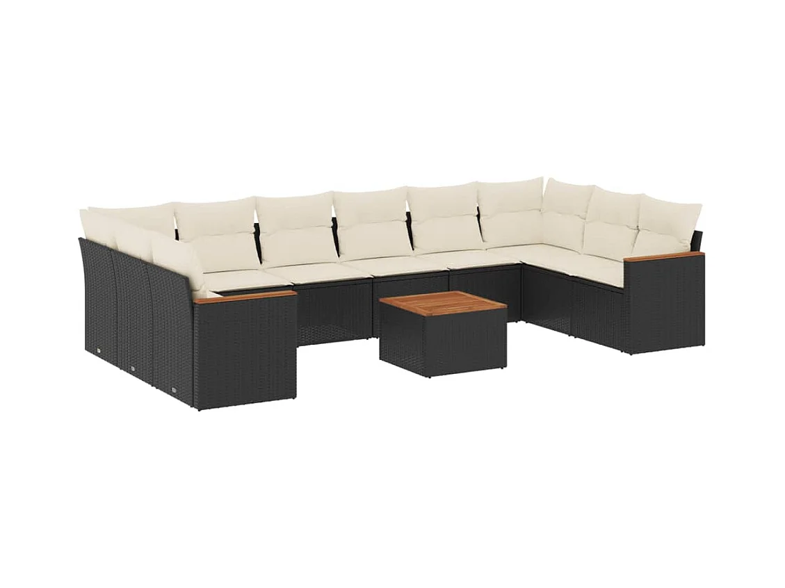 11 peças conjunto sofás de jardim c/ almofadões vime PE preto