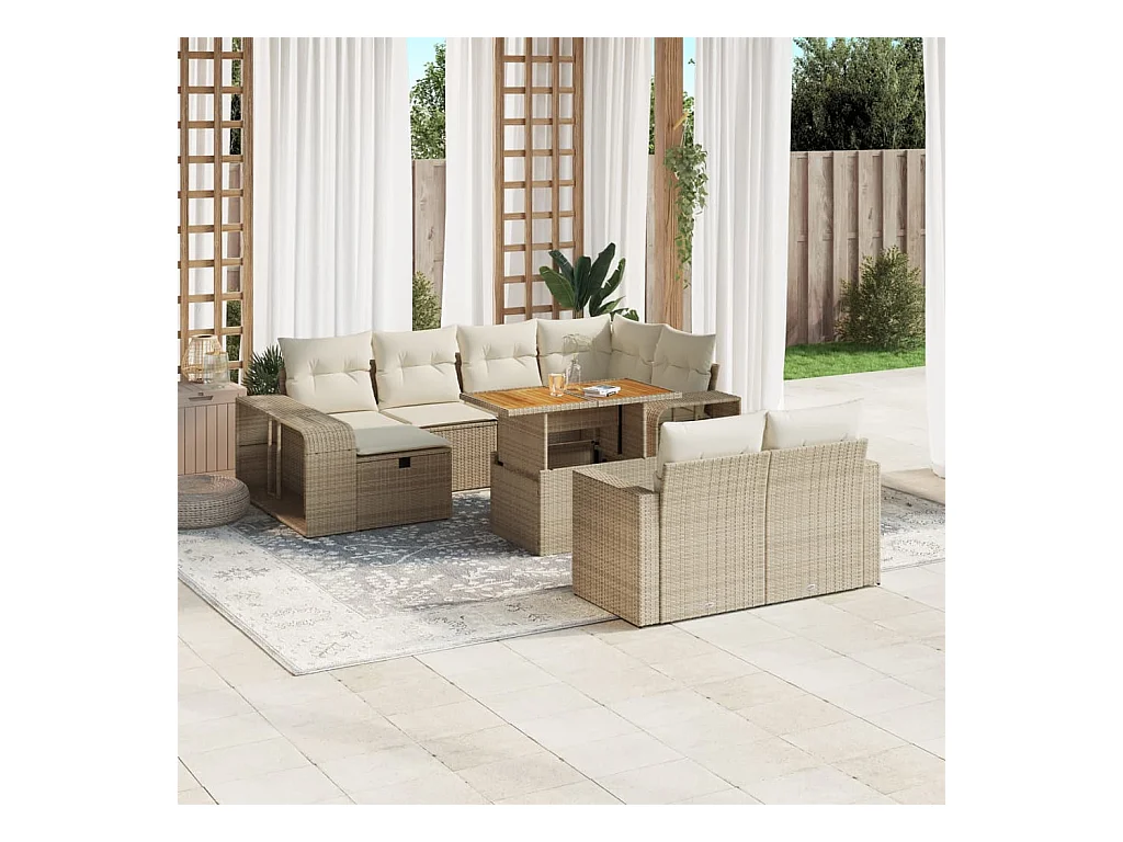 11 peças conjunto sofás de jardim com almofadões vime PE bege
