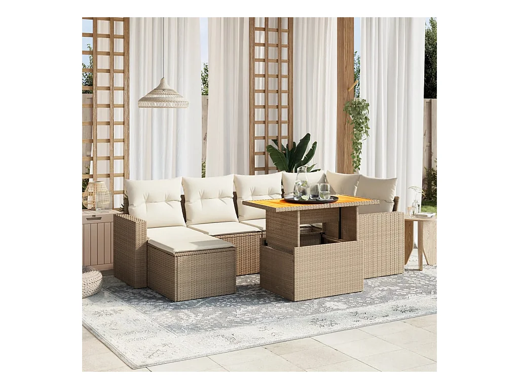 11 peças conjunto sofás de jardim com almofadões vime PE bege