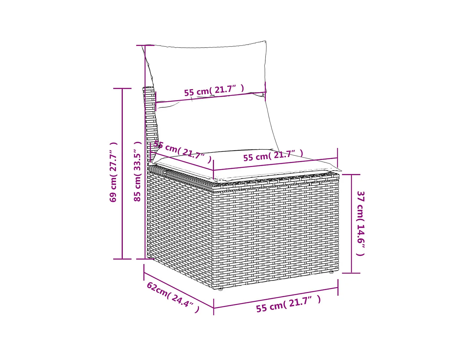 11 peças conjunto sofás de jardim com almofadões vime PE castanho
