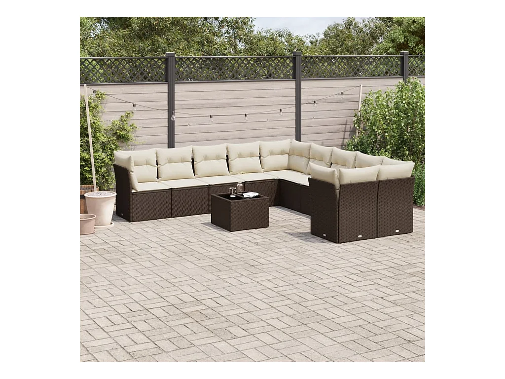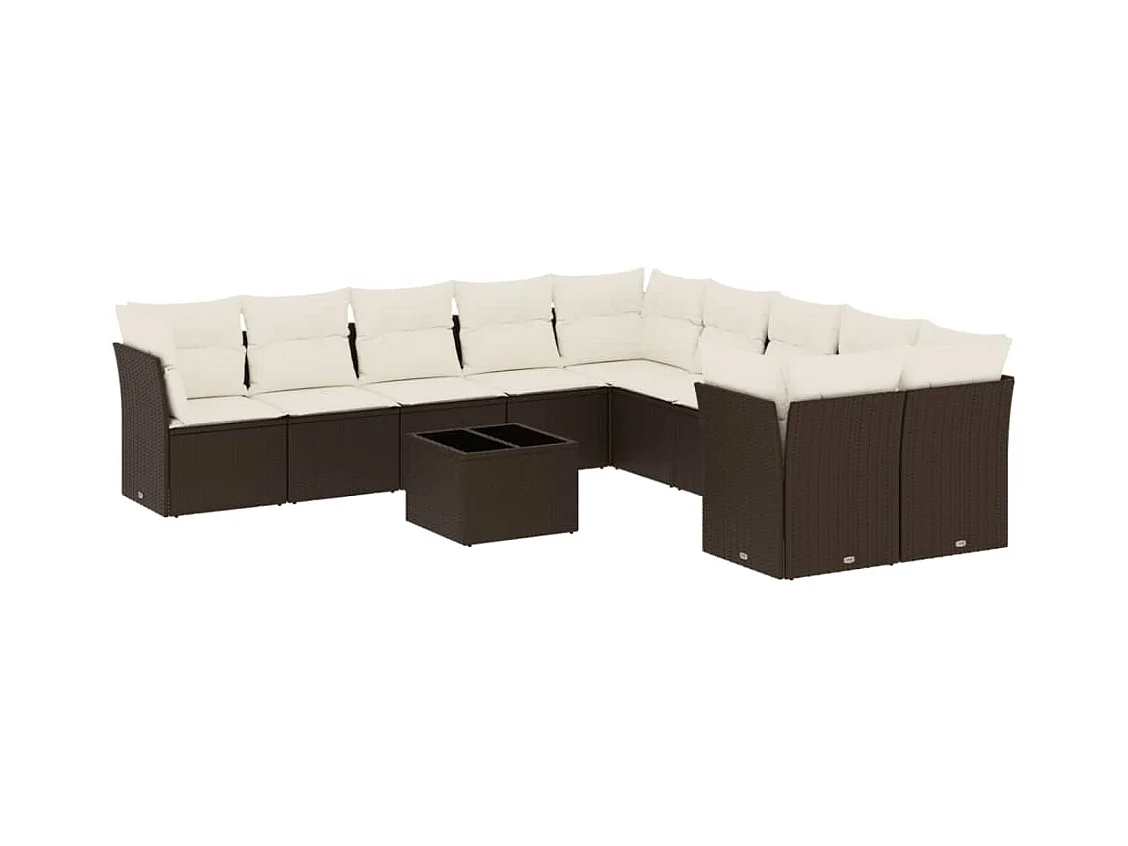 11 peças conjunto sofás de jardim com almofadões vime PE castanho