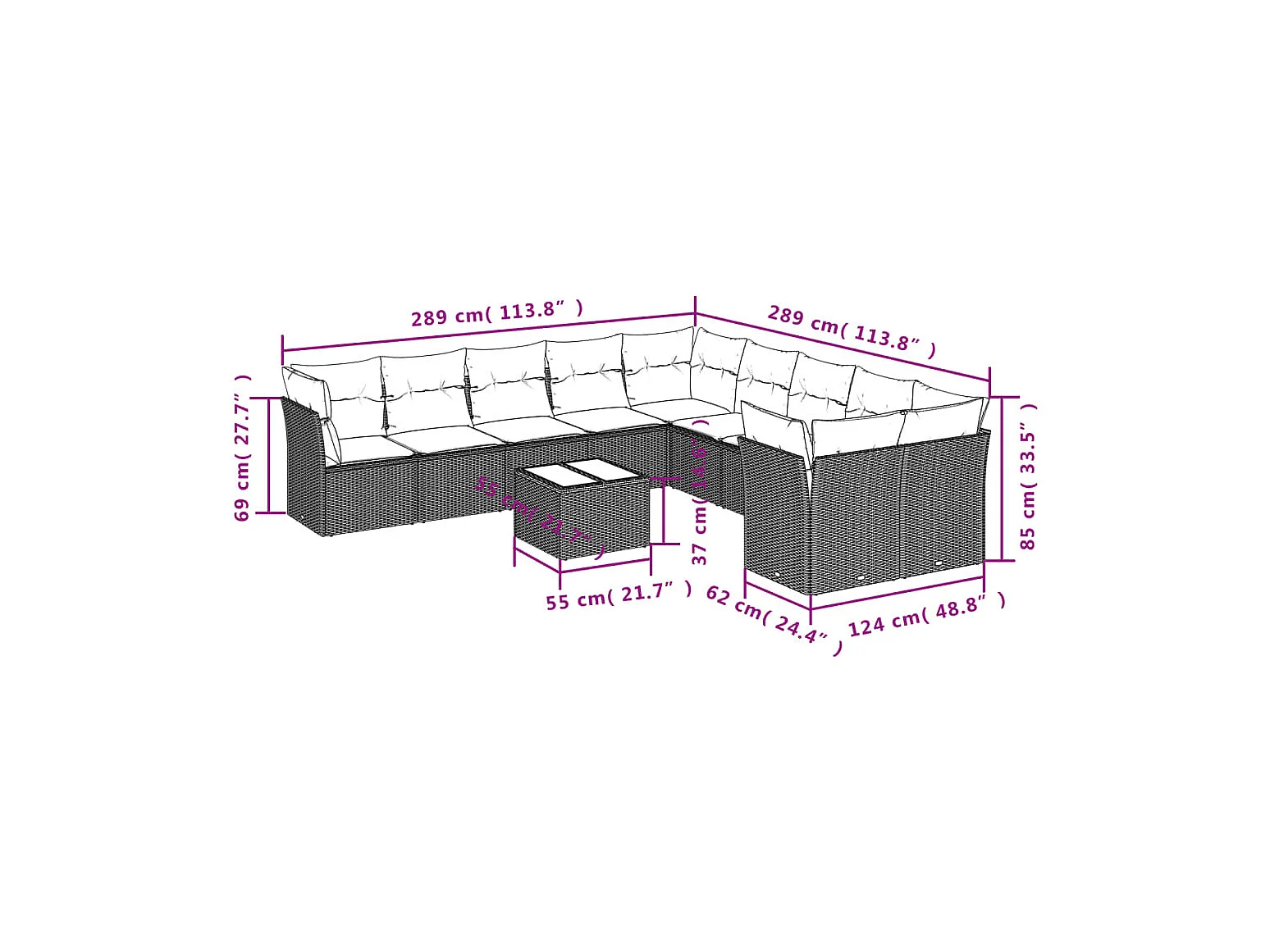 10 peças conj. sofás jardim com almofadões vime PE castanho