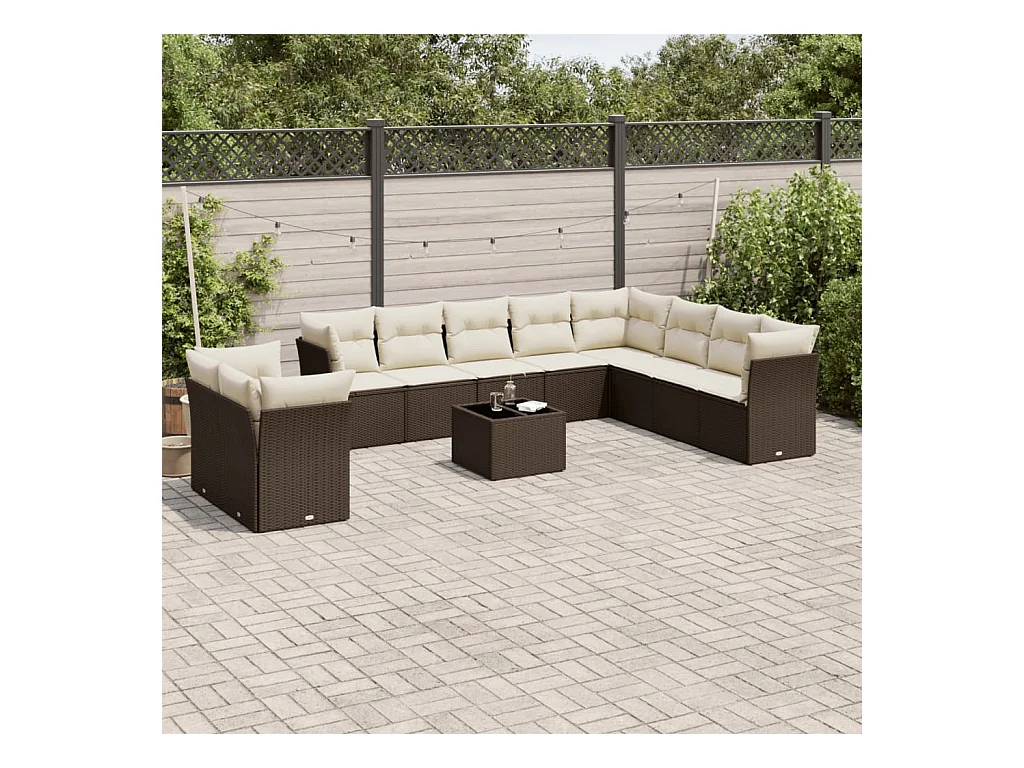 11 peças conjunto sofás de jardim com almofadões vime PE castanho