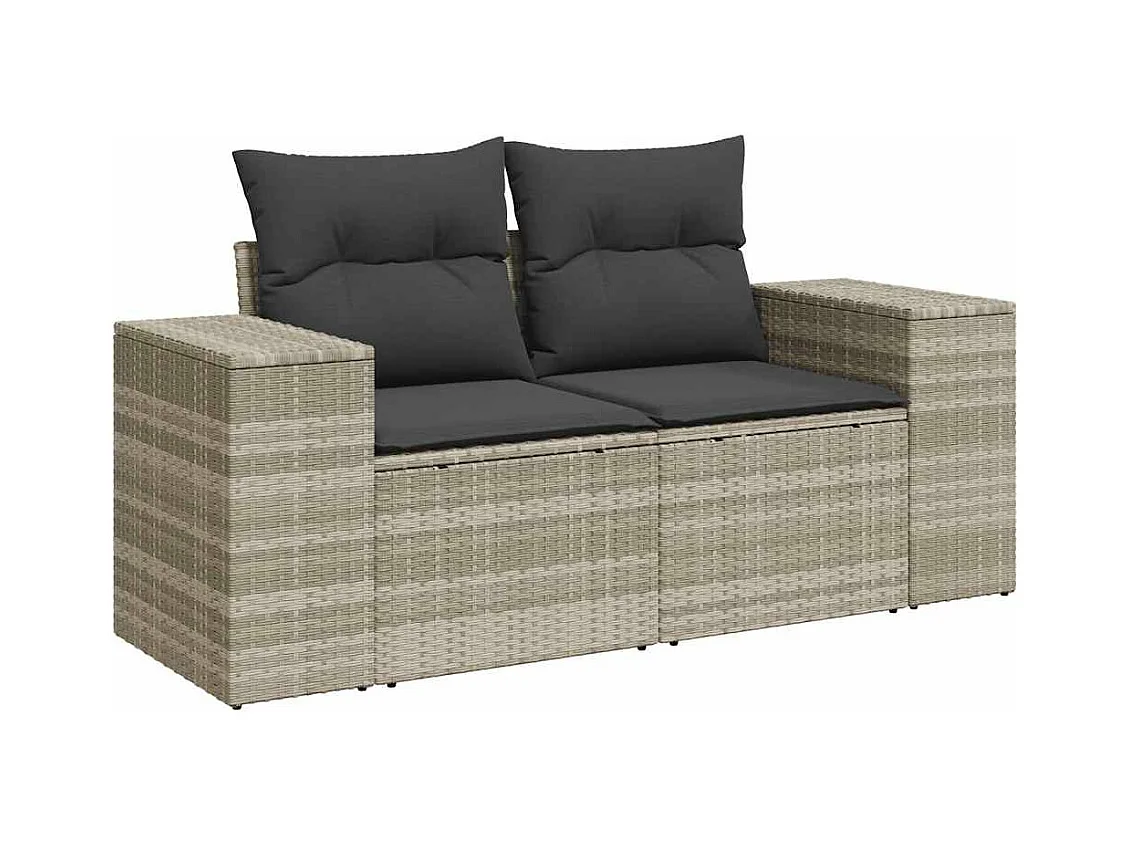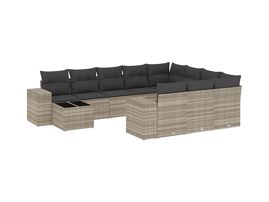 11 peças conjunto sofás de jardim com almofadões vime PE cinzento