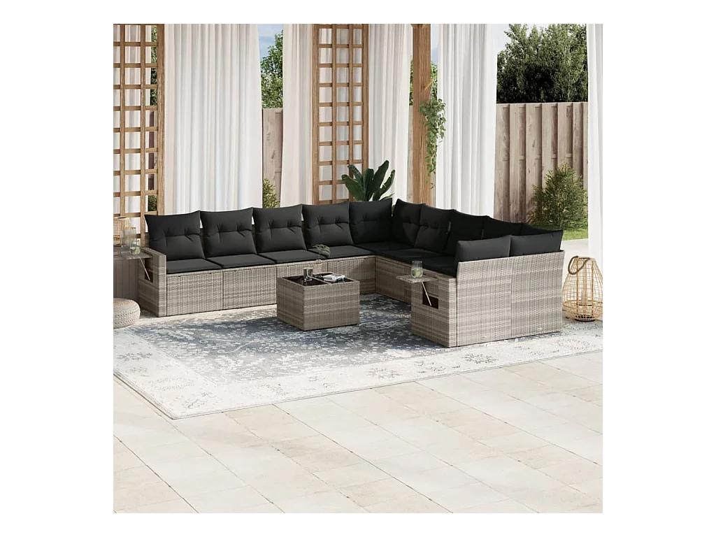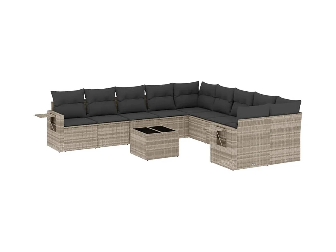 12 peças conj. sofás jardim com almofadões vime PE cinzento-claro