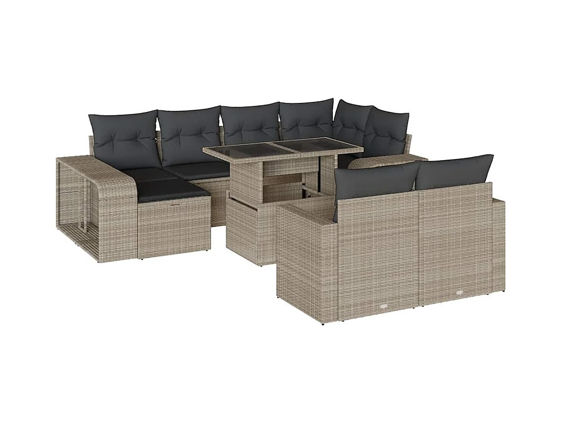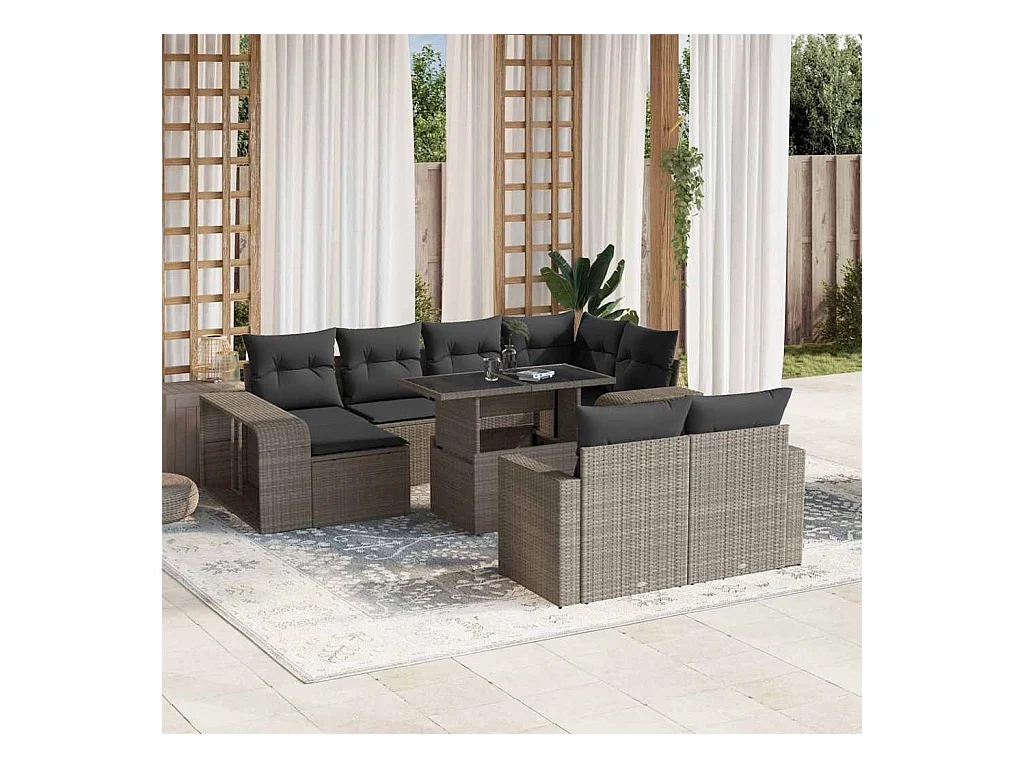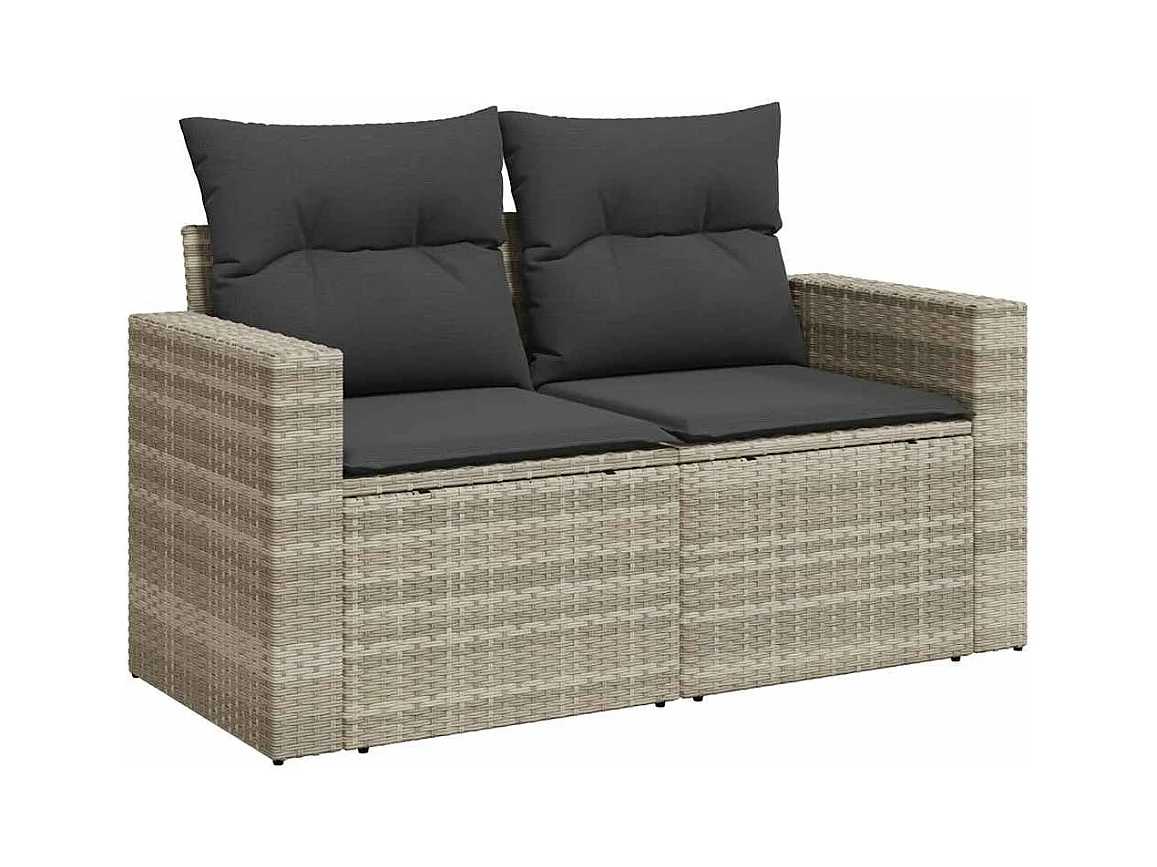 11 peças conjunto sofás de jardim com almofadões vime PE cinzento