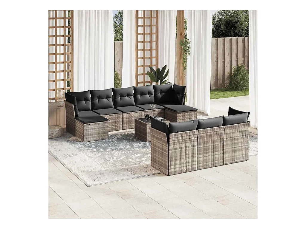11 peças conjunto sofás de jardim com almofadões vime PE cinzento