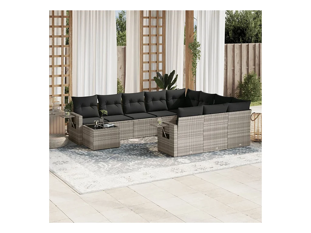 11 peças conjunto sofás de jardim com almofadões vime PE cinzento