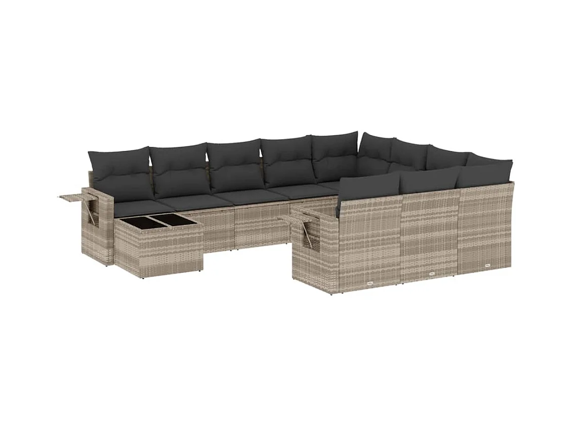 12 peças conj. sofás jardim com almofadões vime PE cinzento-claro