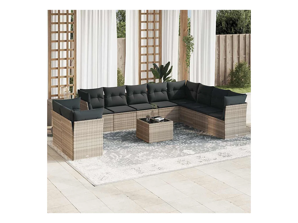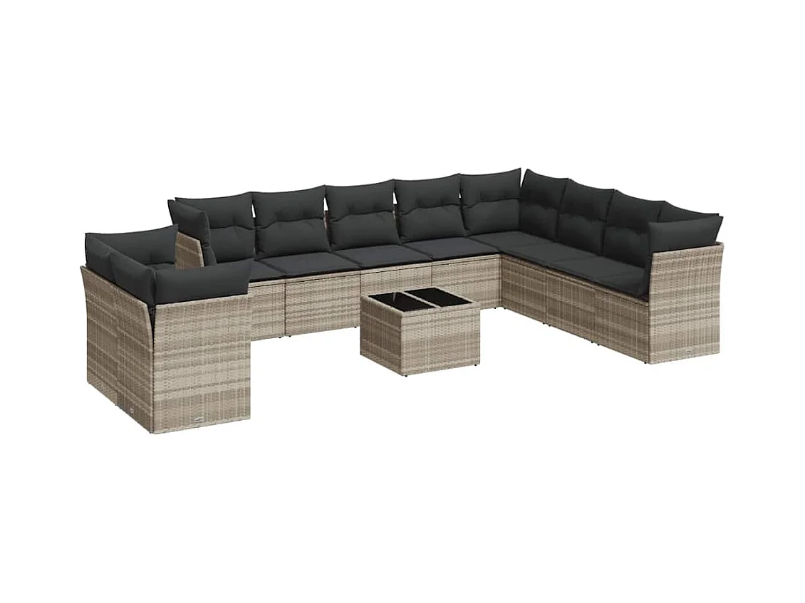 11 peças conjunto sofás de jardim com almofadões vime PE cinzento