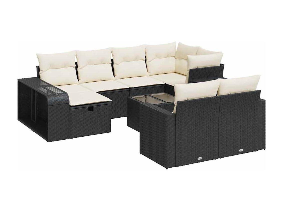 10 peças conjunto sofás de jardim com almofadões vime PE preto