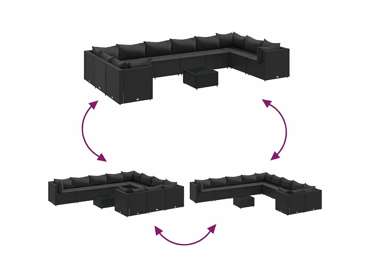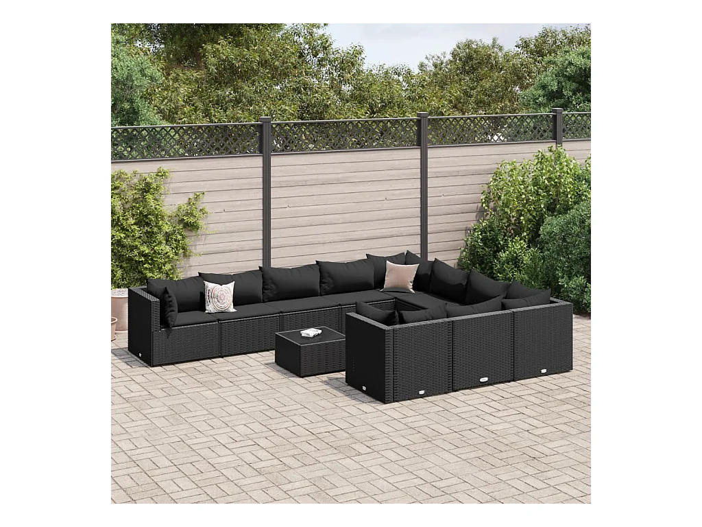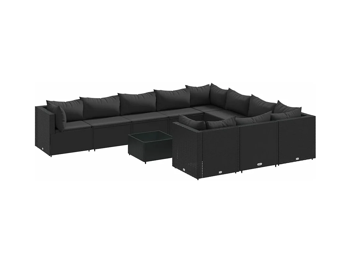 11 peças conjunto sofás de jardim com almofadões vime PE preto