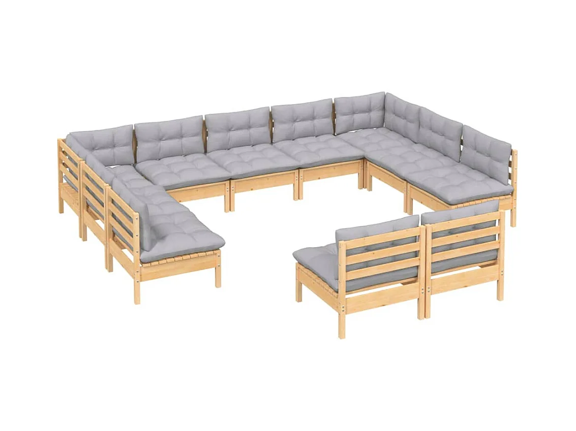 12peças conjunto lounge de jardim + almofadões cinza pinho maciço