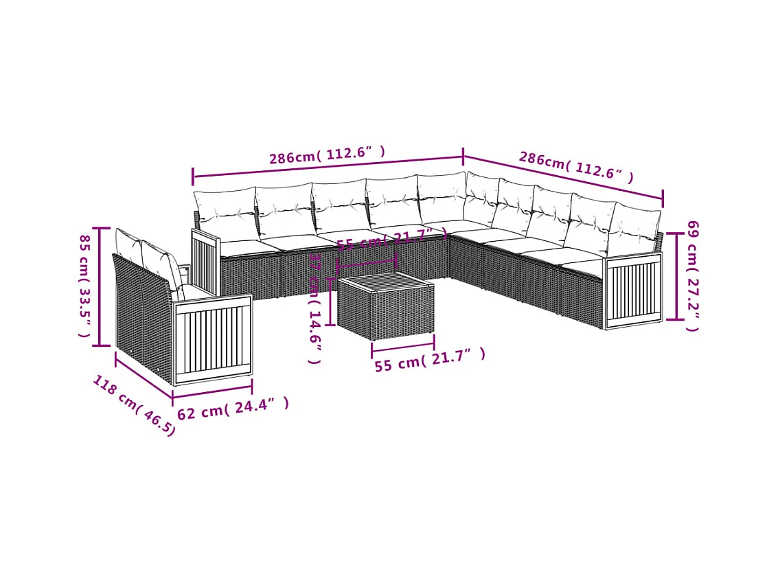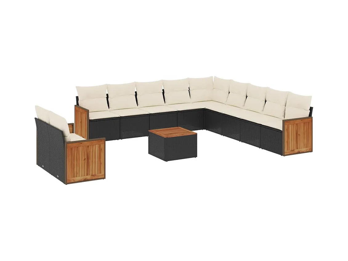 11 pcs conjunto sofás de jardim c/ almofadões vime PE preto