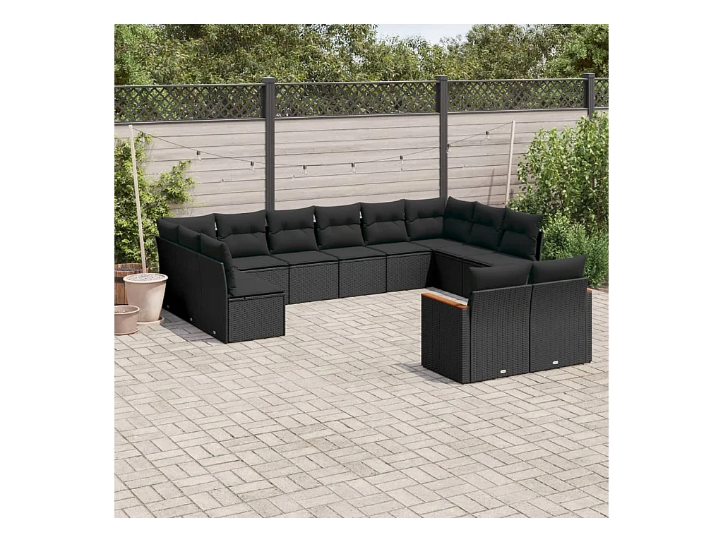 11 pcs conjunto sofás de jardim c/ almofadões vime PE preto